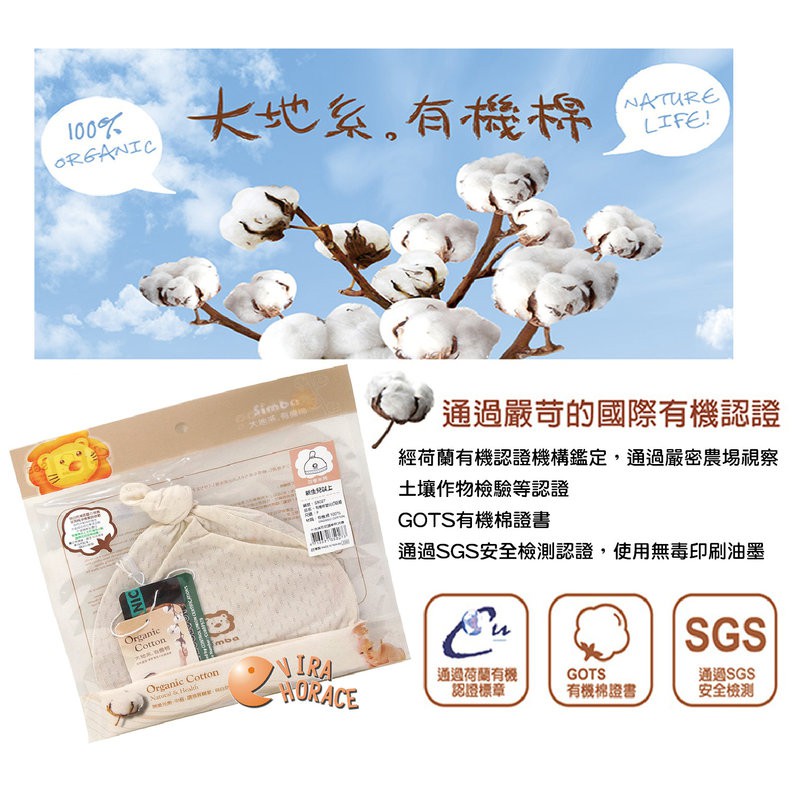 小獅王辛巴 有機棉嬰兒打結帽 天然有機呵護更安心 S5027 HORACE
