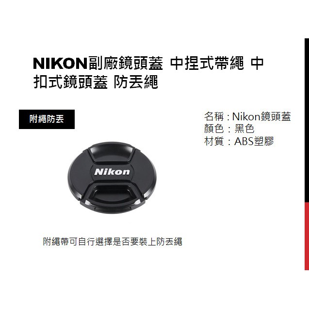 Nikon 副廠鏡頭蓋 86mm 中捏式帶繩 中扣式鏡頭蓋 附防丟繩