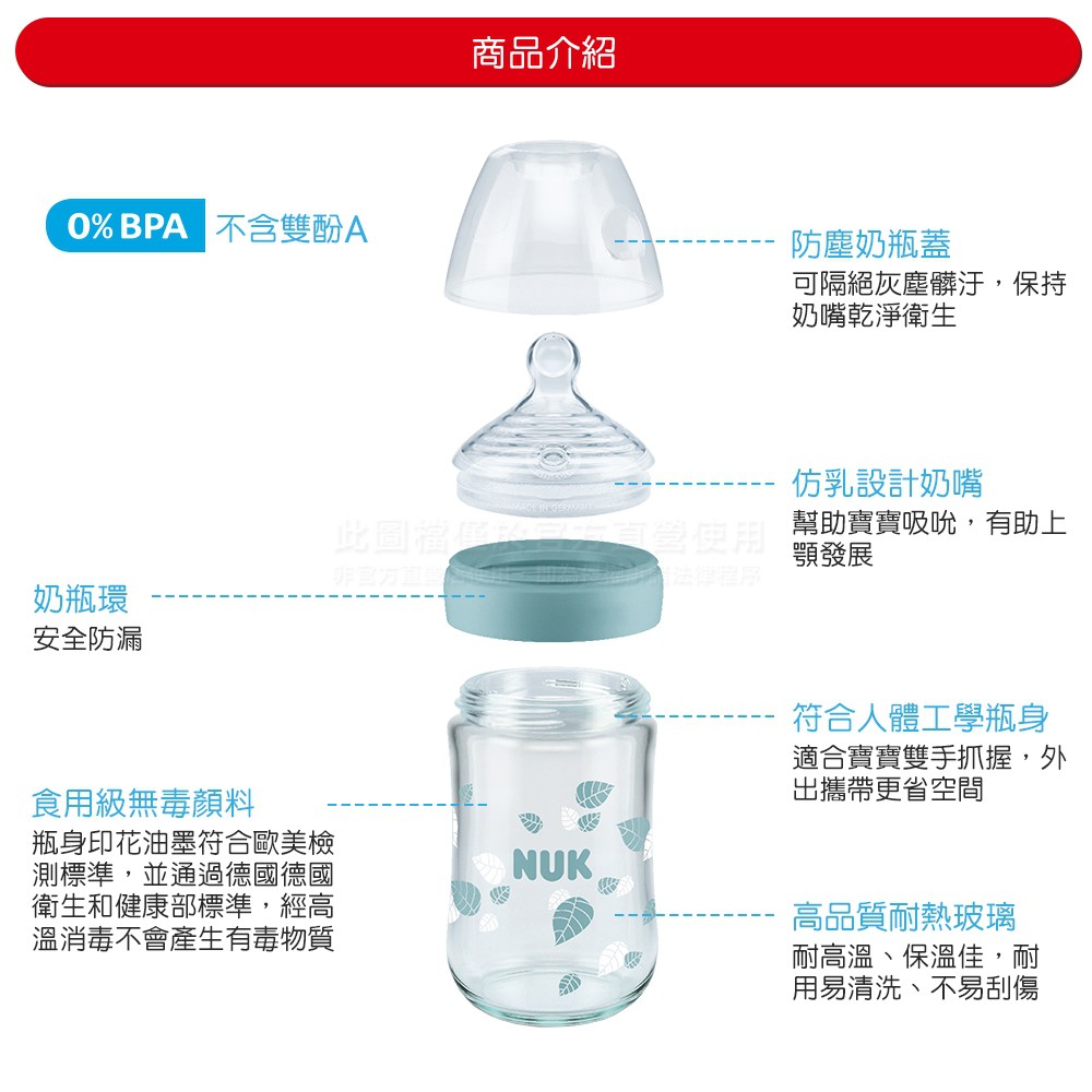 德國NUK-自然母感玻璃奶瓶120ml-附1號中圓洞矽膠奶嘴0m+(顏色隨機出貨)