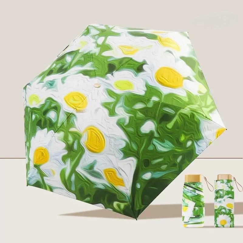 [台灣出貨+發票] 傘 油畫迷你六折口袋遮陽傘 黑膠防曬 小巧便攜折疊手動雨傘