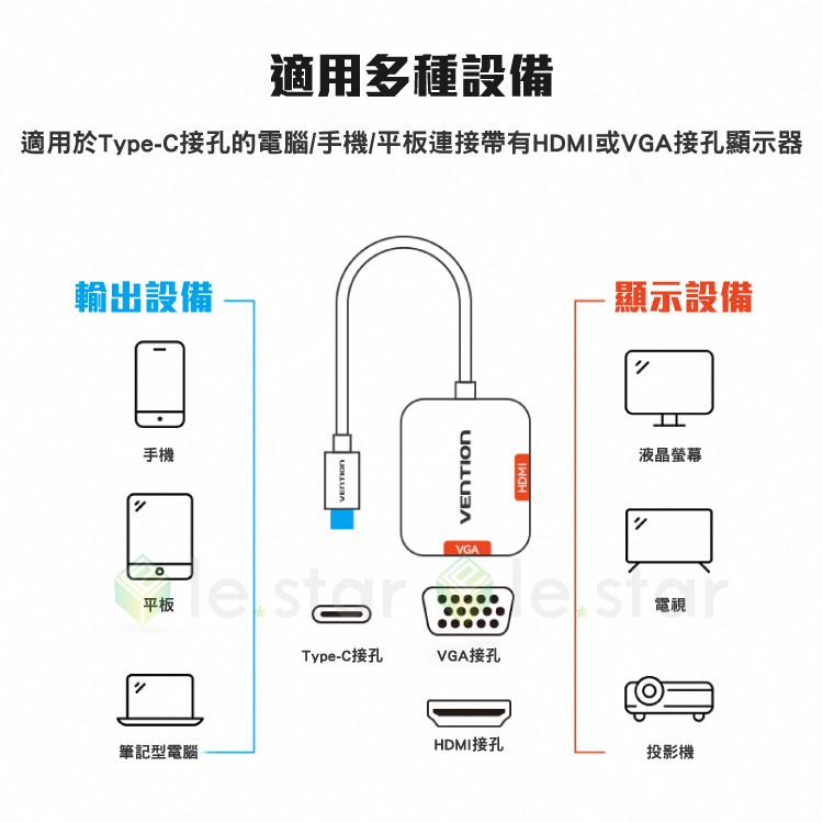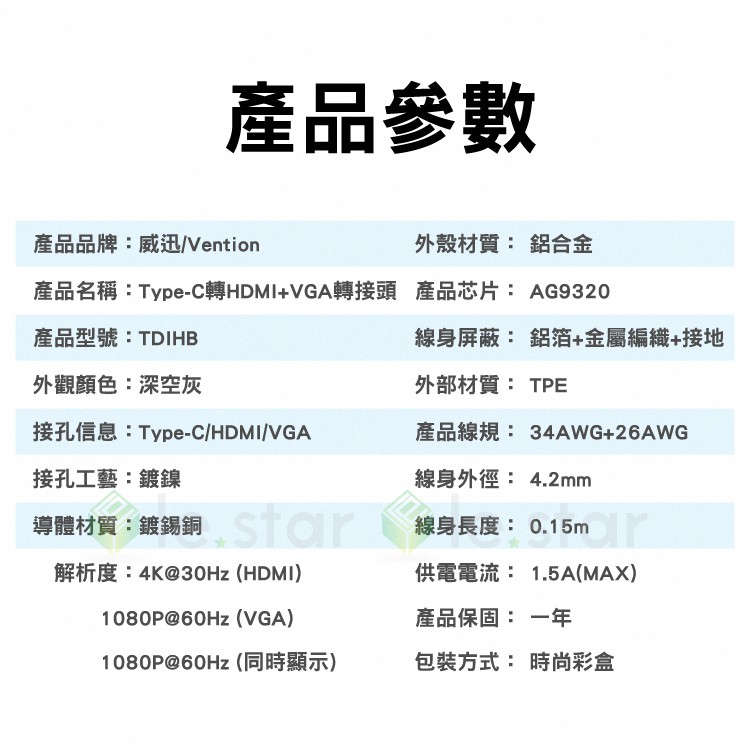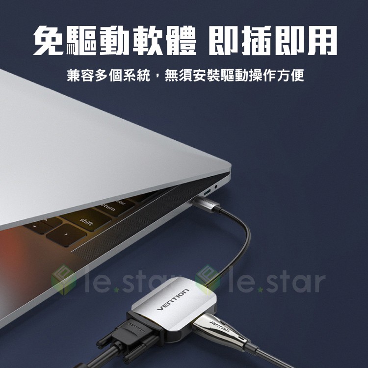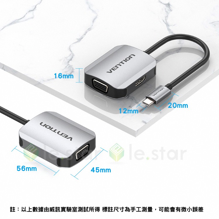 VENTION 威迅 TDI系列 Type-C 轉 HDMI+VGA 轉接器 公司貨 影音轉接 高清畫質 雙孔輸出
