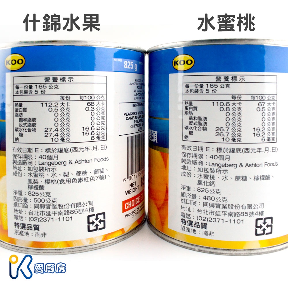 愛廚房~KOO 口蜜牌 水果罐頭 825g 什錦水果罐頭 水蜜桃罐頭 水果 水蜜桃 蛋糕 派餡 烘焙原料