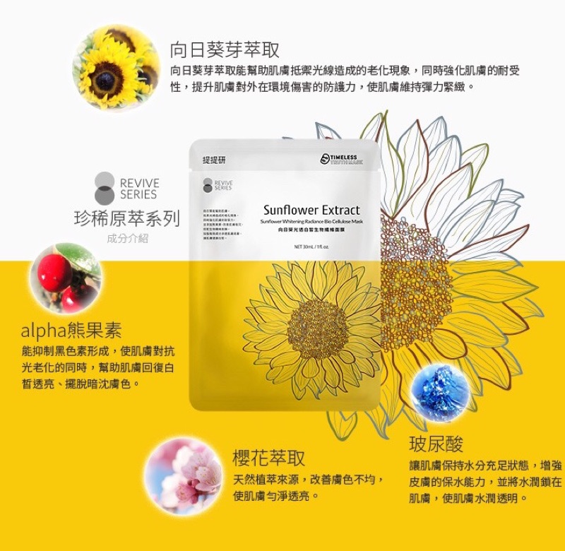 TTM提提研永生苔瞬活 冰萃奇蹟耀眼膜 極地雪藻乳霜滋潤 向日葵光透白皙 歐洲版 法文版 蠟菊 蜂萃 生物纖維面膜