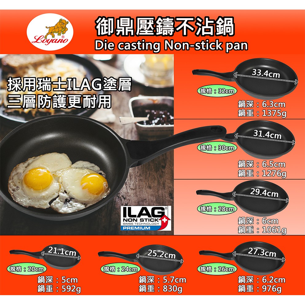 御鼎不沾鍋 20~32cm 平底鍋 炒鍋 不沾鍋 瑞士ILAG三層 御鼎 壓鑄 可用電磁爐