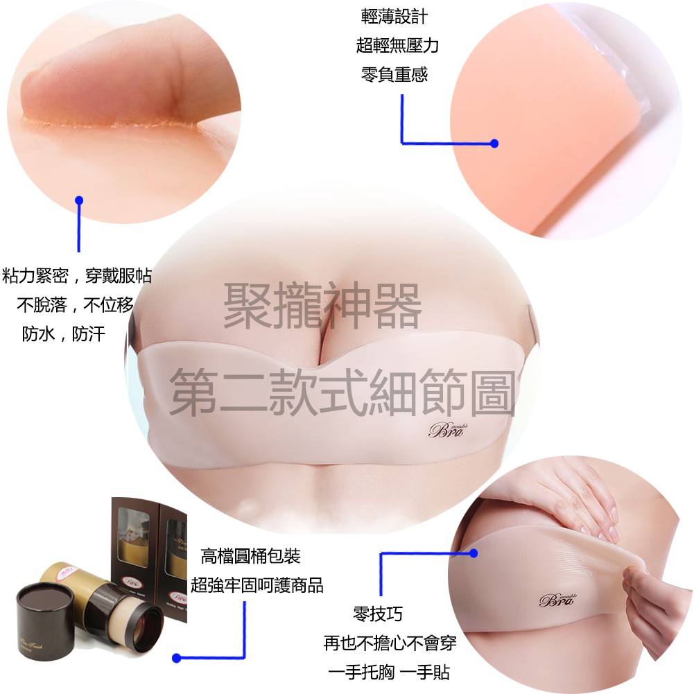 Varsbaby 爆乳神器 一片式平口露背胸貼 集中爆乳低胸美背隱形內衣 拉繩bra 比基尼婚紗禮服一字領內衣 超黏防水