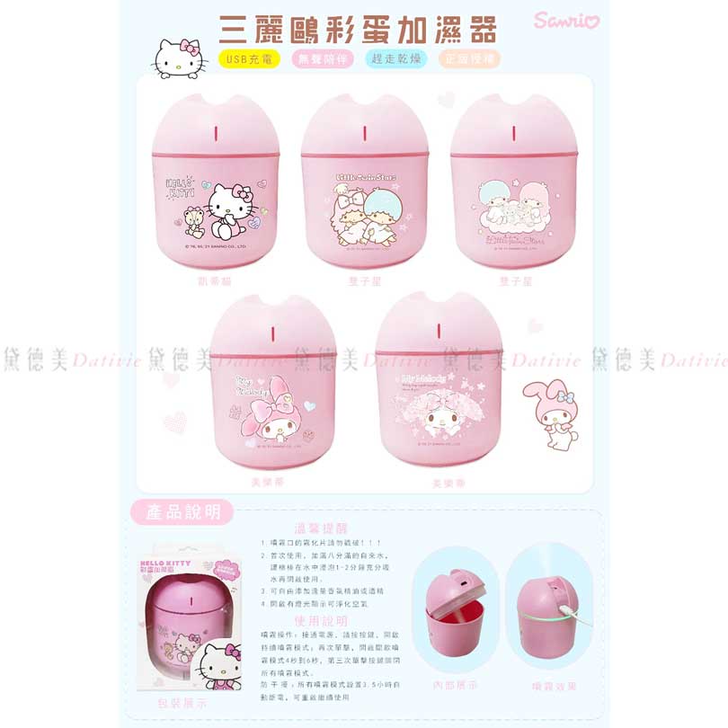 彩蛋USB加濕器 220ml-凱蒂貓 雙子星 美樂蒂 三麗鷗 Sanrio 台灣正版授權