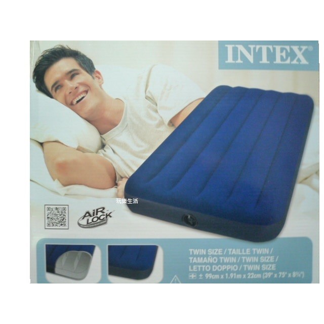 玩樂生活 INTEX 68757單人植絨充氣床 休閒床墊 露營床墊 睡墊 飯店加床送收納袋(免費維修 瑕疵換新品)