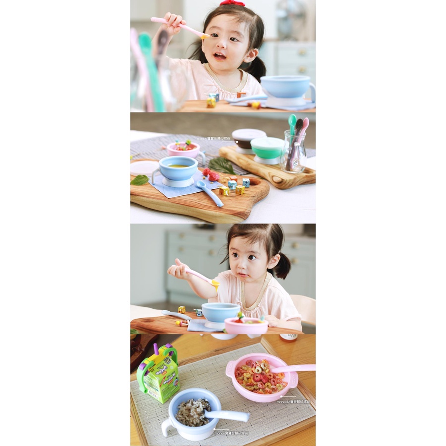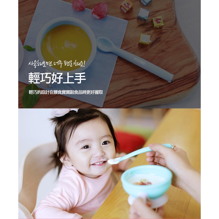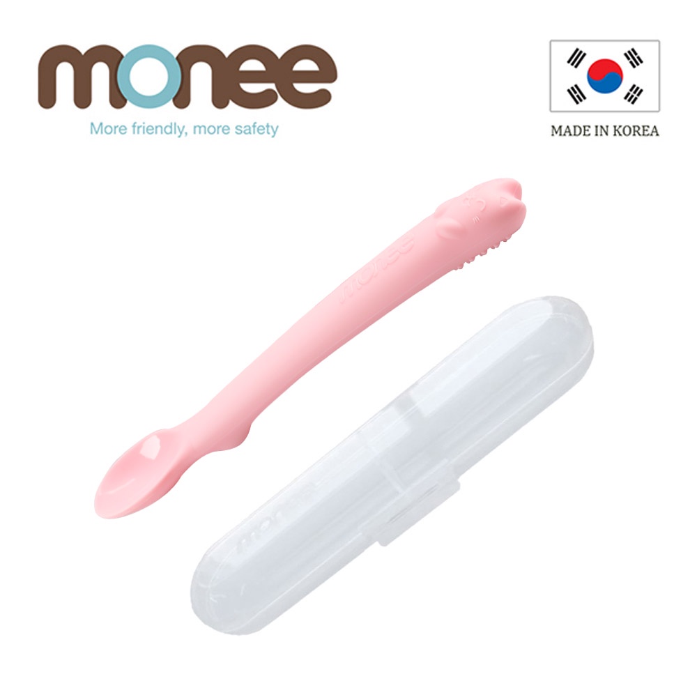 韓國 Monee 100%白金矽膠寶寶智慧矽膠湯匙/草莓粉(贈收納盒)
