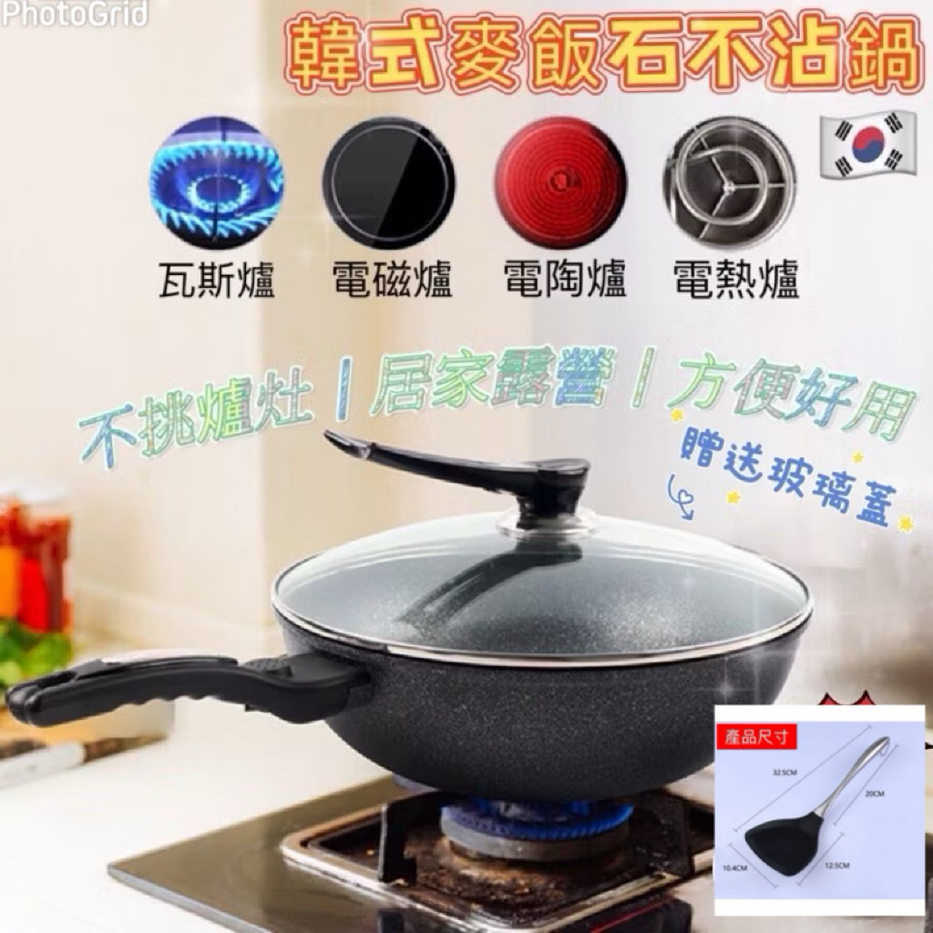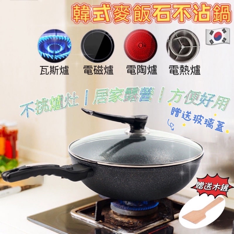 🌀LeLe生活百貨🌀韓式麥飯石不沾鍋 韓國麥飯石炒鍋 平底鍋 厚實塗層 鍋壁加厚 炒菜鍋 煎鍋 炒鍋 不挑爐灶 輕油煙