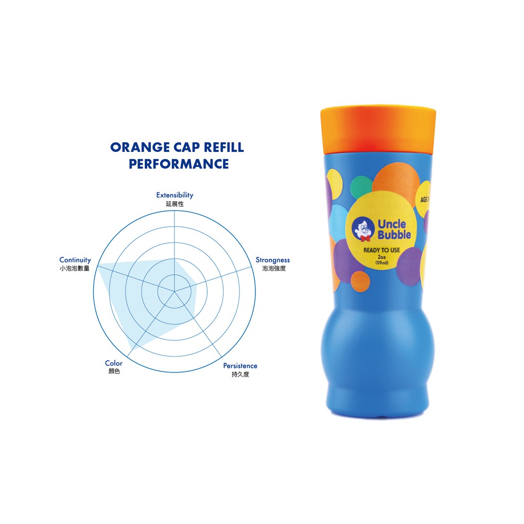 《安可堡》Uncle Bubble 2020新品 安可堡七彩連續泡泡水2oz (橘蓋)(單瓶)(世界記錄挑戰款)