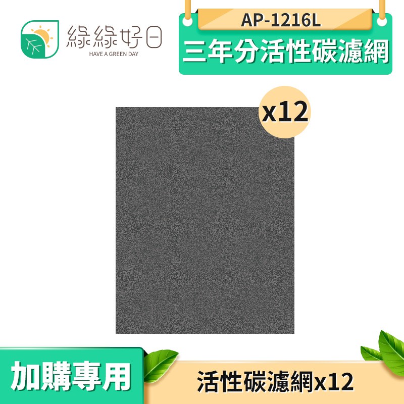 綠綠好日 三年分活性碳濾網 適用 AP-1216L
