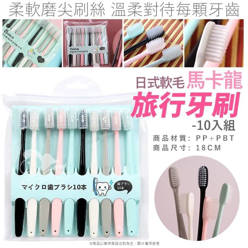 現貨 快速出貨 日式軟毛馬卡龍旅行牙刷-10入組 牙刷 日式軟毛牙刷 小麥桔桿牙刷 小麥牙刷 竹炭牙刷