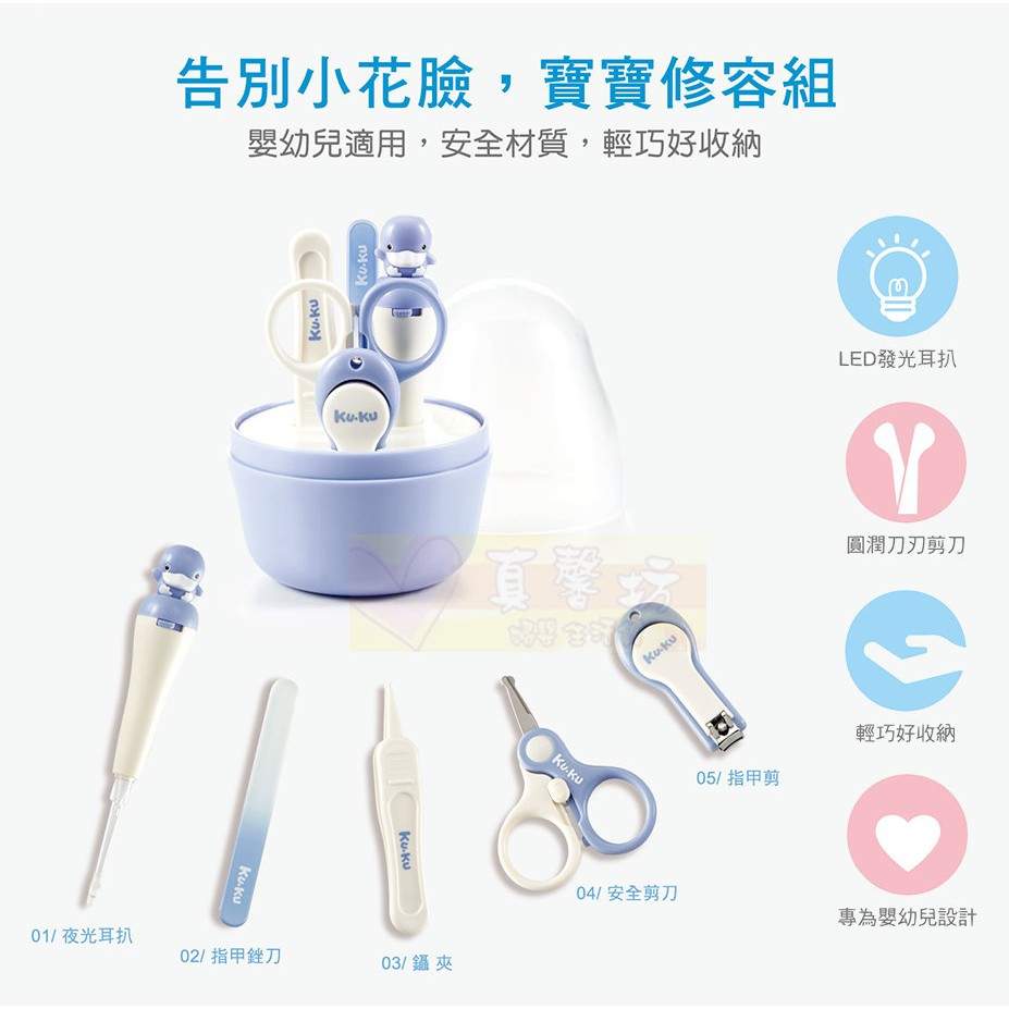 酷咕鴨Ku.ku 寶貝蛋修容組 - KUKU夜光耳扒/指甲銼刀/鑷夾/安全剪刀/指甲剪