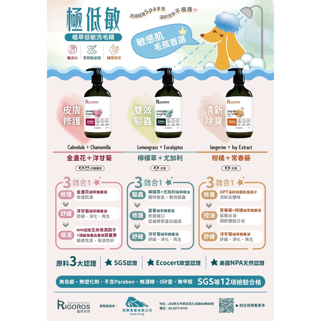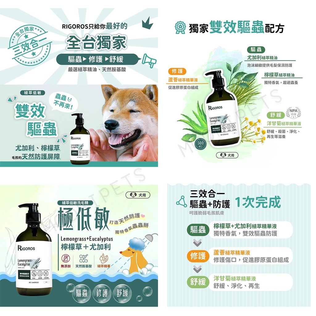 【姆比】RIGOROS蕾格萊詩 三效合一 植萃極低敏洗毛精 雙效驅蟲清新除臭皮膚維護 天然胺基酸 寵物洗毛精 寵物沐浴乳