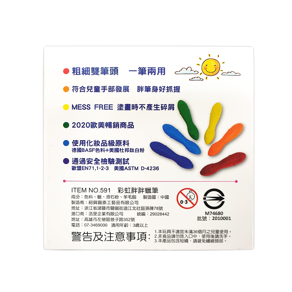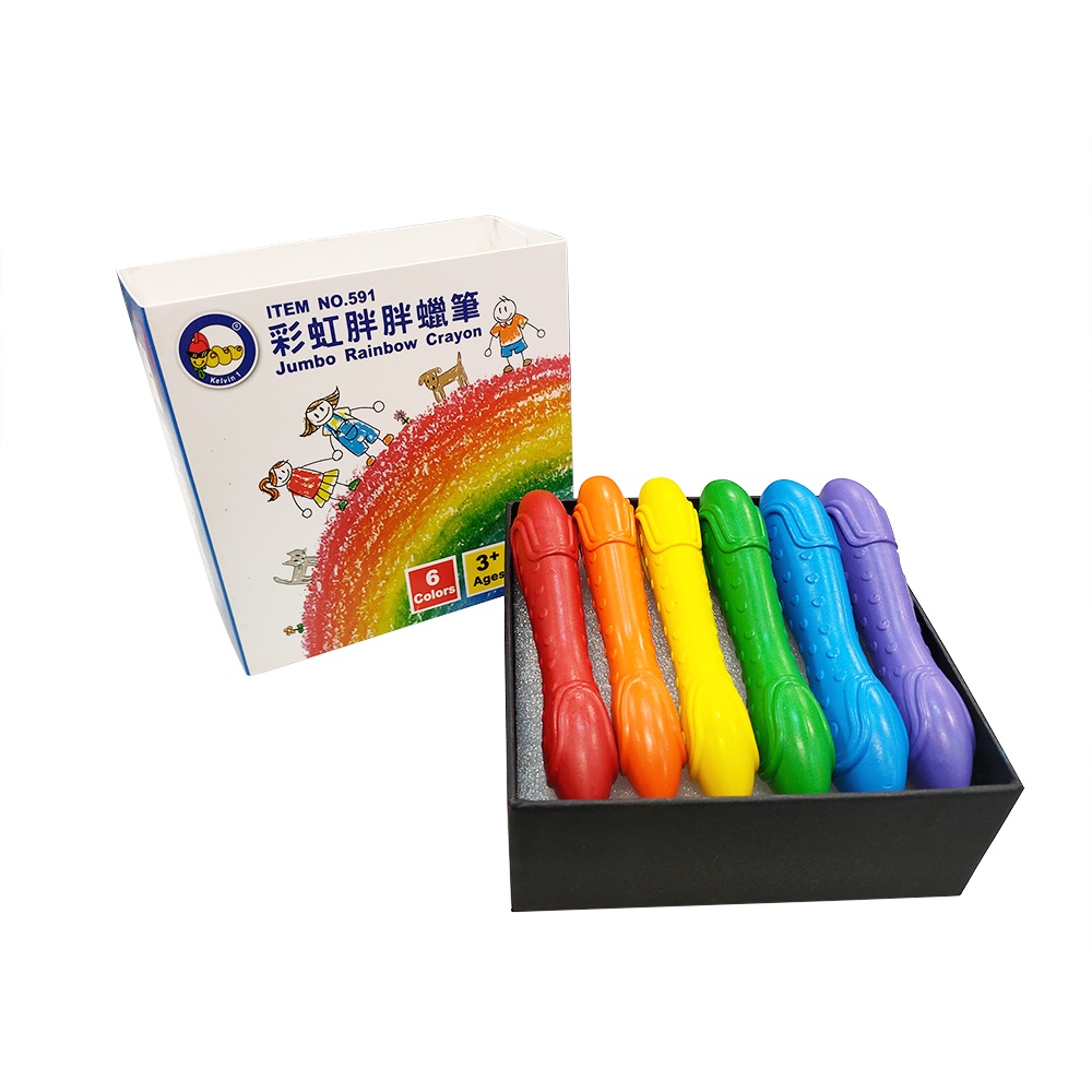 📣愛玩家文化📣 小凱薩【彩虹胖胖蠟筆】 六色 不掉色 不沾手 不碎屑 安全檢測 好抓握 學前練習 畫畫 塗鴉 繪畫