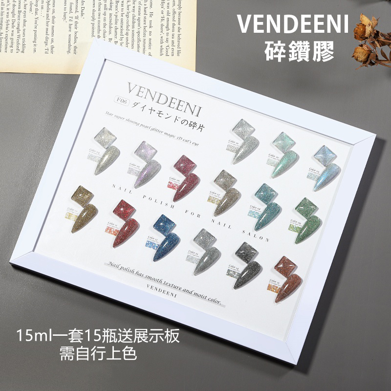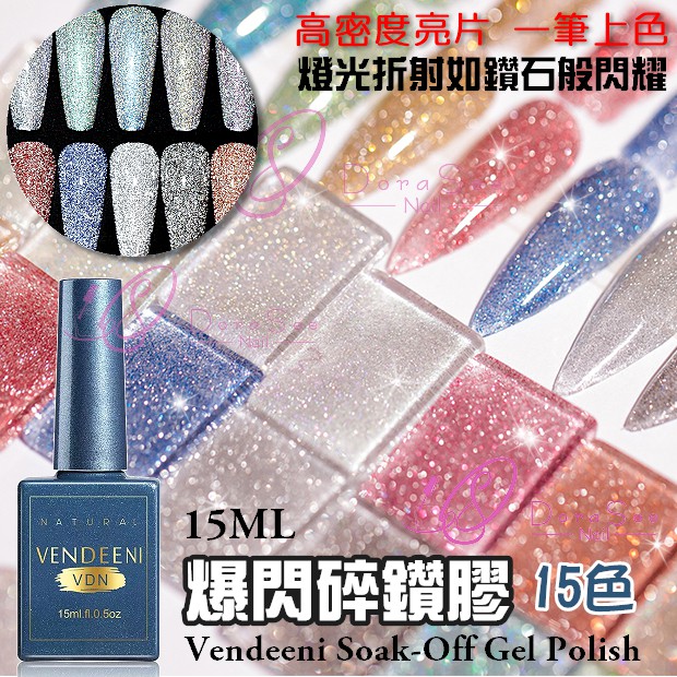 Vendeeni 碎鑽膠 15色爆閃碎鑽膠 光撩 美甲 凝膠 美甲凝膠 甲油膠 光撩指甲油 F6 VDN Dorasee