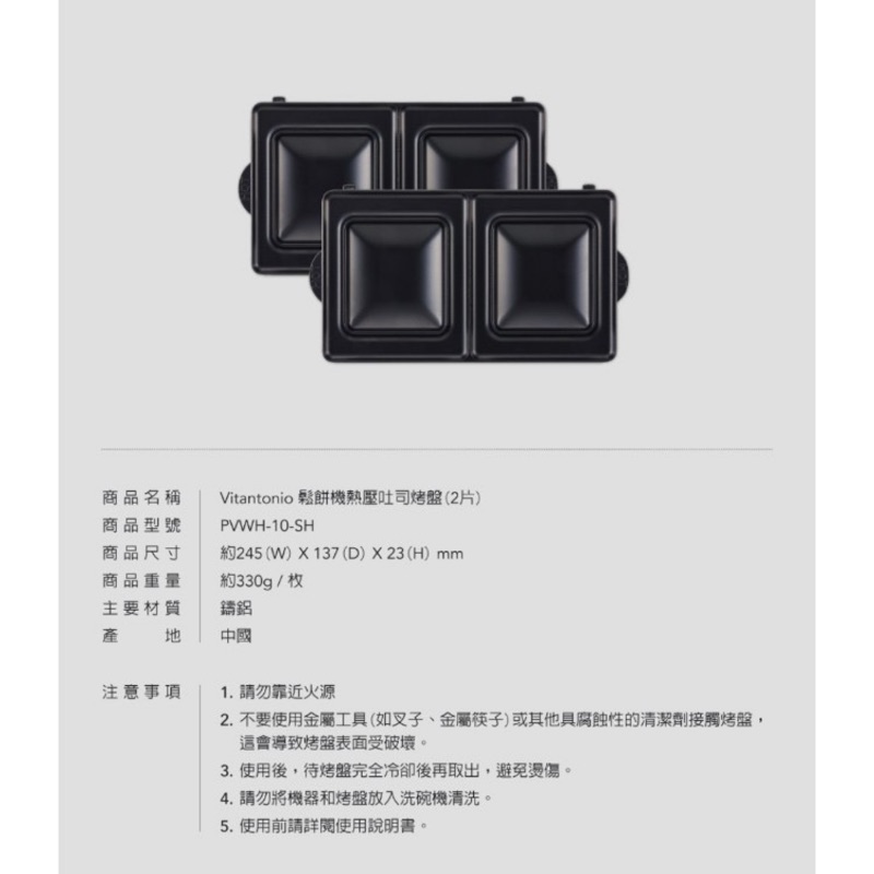 Vitantonio 鬆餅機 正方型三明治烤盤 PVWH-10-SH 小V鬆餅機 鬆餅機烤盤