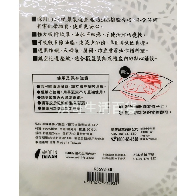 台灣製 美味關係 炸物吸油紙 50入 K9036 生活大師 UdiLife 厚口 鏤花 長型 炸物吸油紙 食物吸油紙