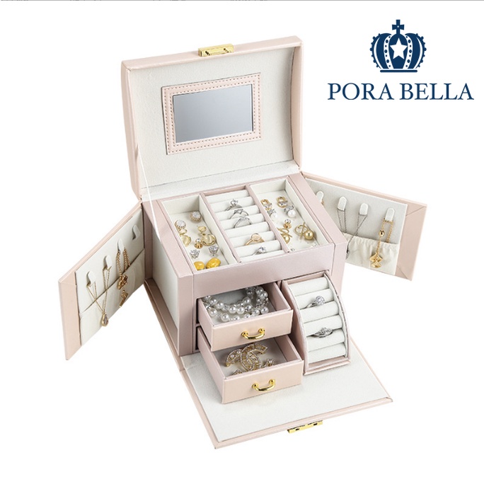 《Porabella》大容量皮革首飾盒|手提旅行珠寶收納,絨布內襯防刮,戒指項鍊耳環耳夾展示收納
