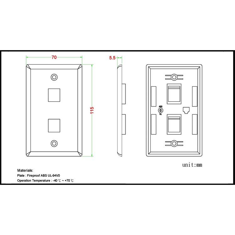 WJ 2孔插座面板,UL 防火材質 (WJ-2P) SUNBOX