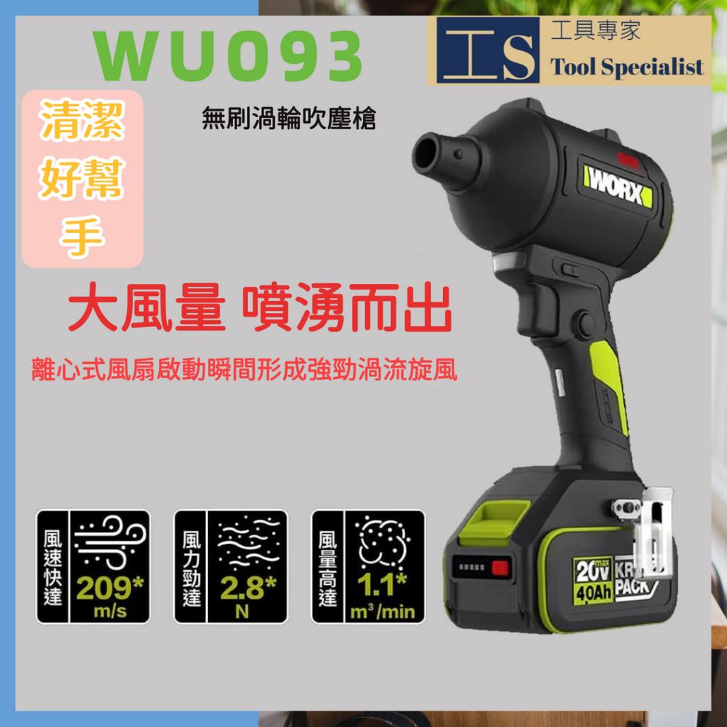 WORX威克士 WU093無刷渦輪吹塵槍 吹風 鼓風機 hepa濾網 強力風速 4檔可調