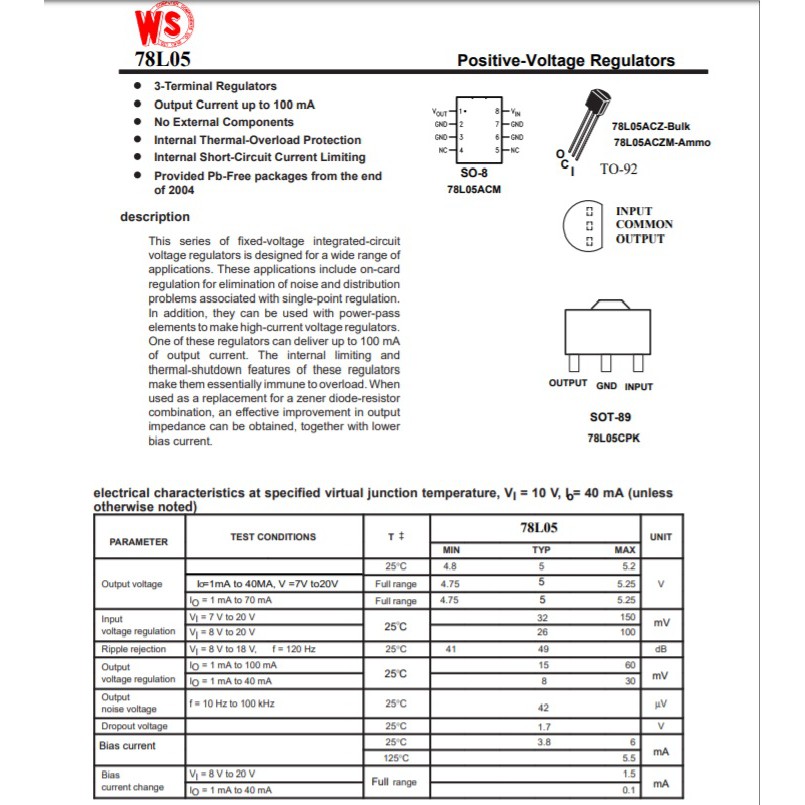 WS 78L05 三端穩壓電源調整器 一組10個 穩壓IC TO-92 正電壓穩壓器