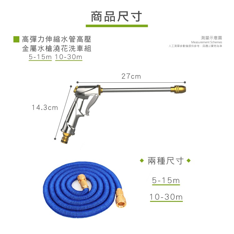 【YOLE悠樂居】高彈力伸縮水管高壓金屬水槍澆花洗車組(5-15m)/(10-30m) #1036013-1 水管 洗地