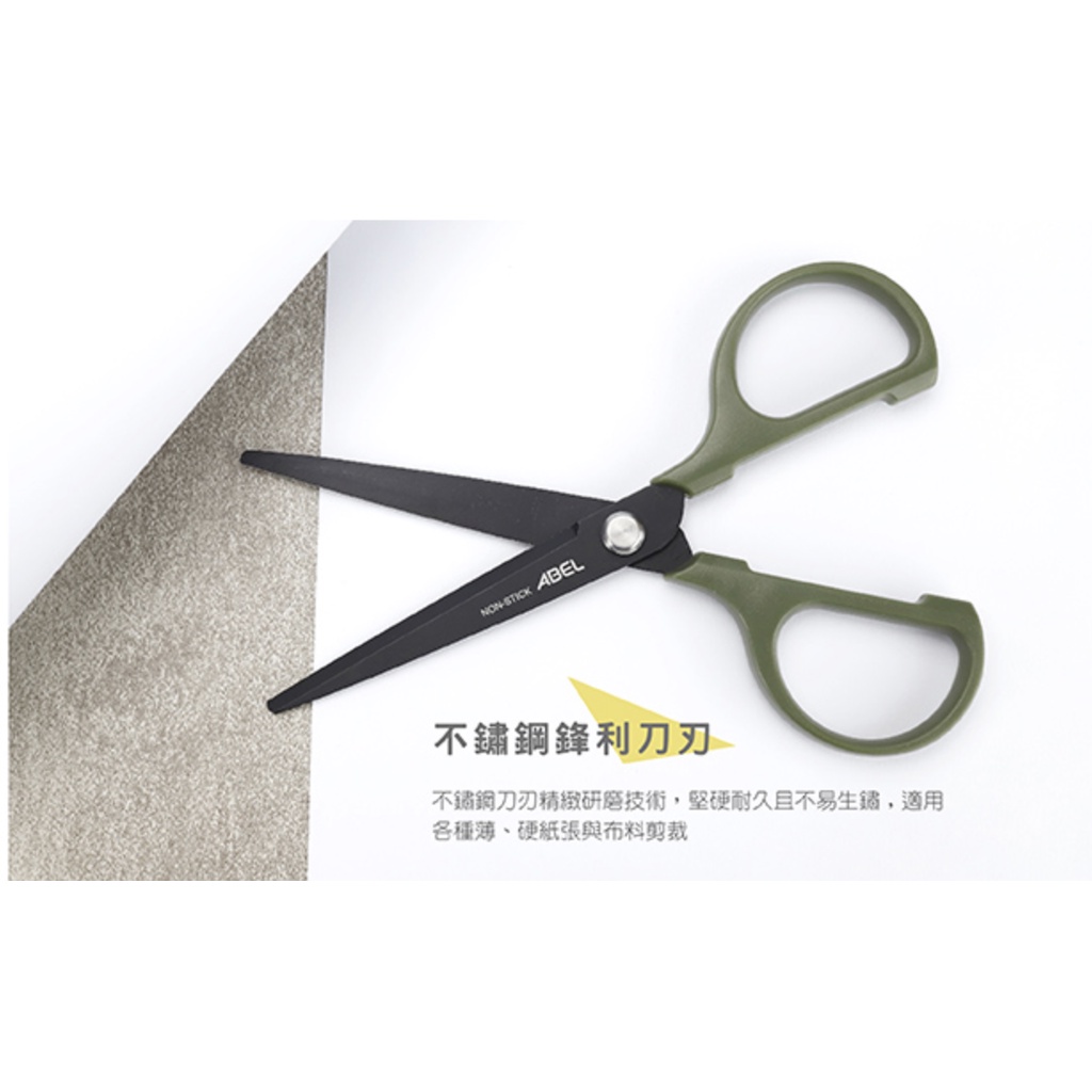 [大塊文具含發票] ABEL 力大 60065 風格文書剪刀 - 曜黑色/軍綠色 6吋 剪刀