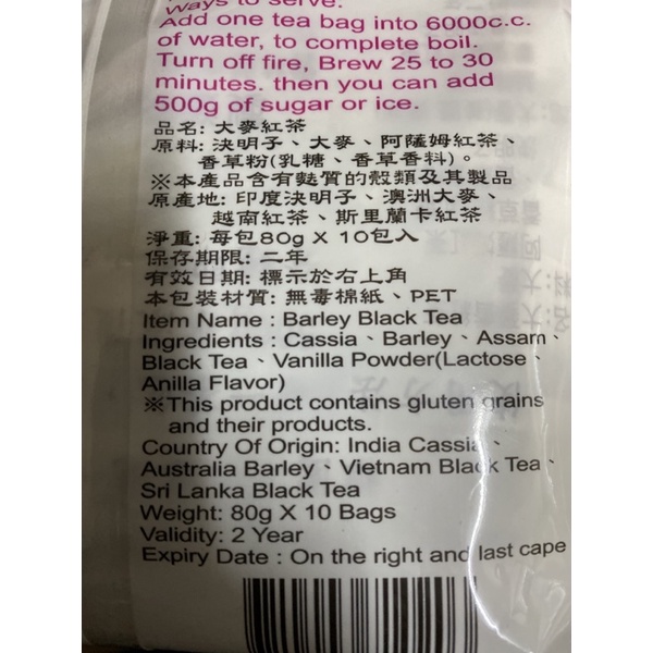 和益大麥紅茶1箱(1袋80克x10)(1箱6袋裝)