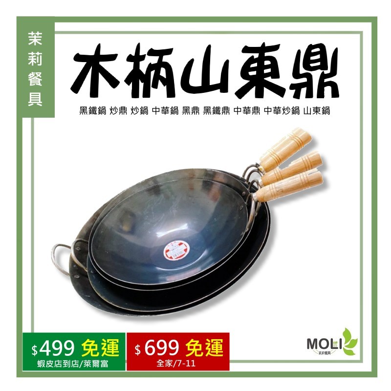 《茉莉餐具》🔥滿額免運🔥木柄山東鼎 山東鼎 黑鐵鍋 炒鼎 炒鍋 中華鍋 黑鼎 黑鐵鼎 中華鼎 中華炒鍋 山東鍋