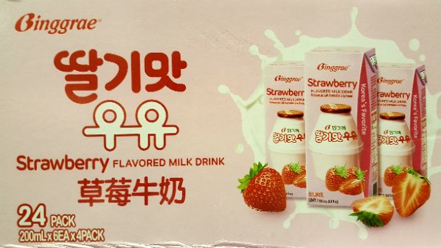 🎉限量特價!BINGGRAE 草莓牛奶/香蕉牛奶(保久調味乳) 每瓶200毫升X24瓶入-吉兒好市多COSTCO代購