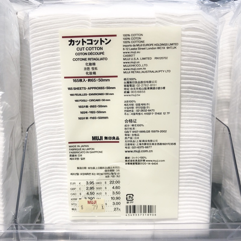 化妝棉🌟現貨升級 [好感生活推薦] 品項:MUJI無印良品 化妝棉系列 無印 原色化妝棉 壓邊 可撕型