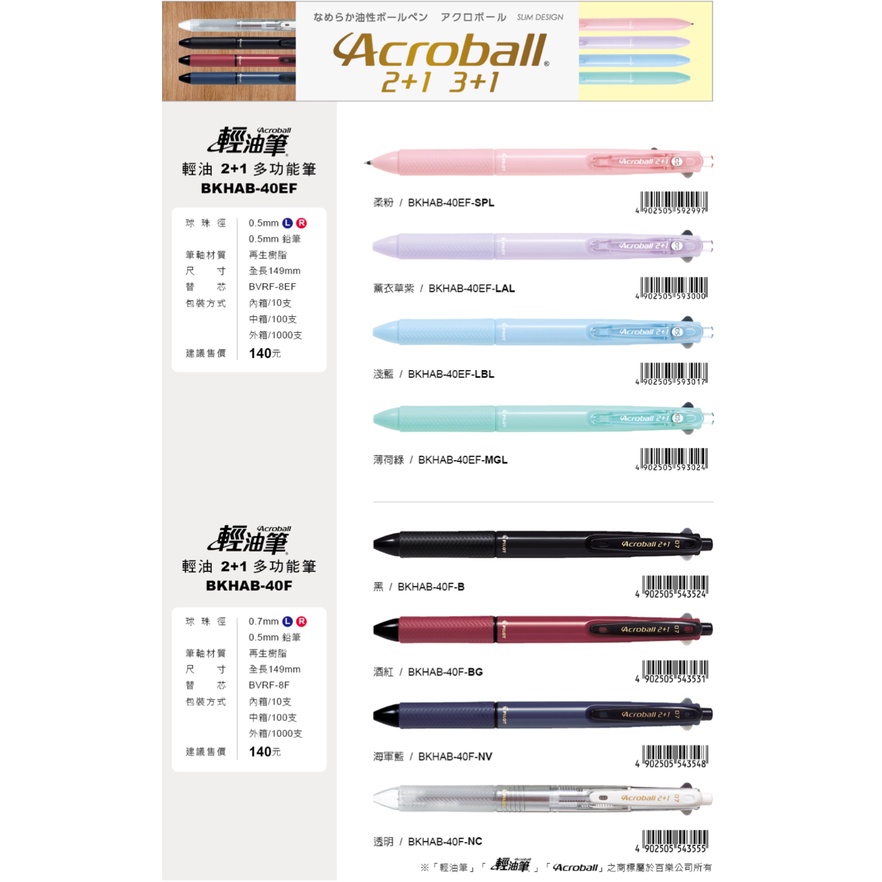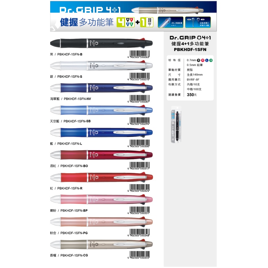 【三禾苑文具】PILOT 百樂 BVRF-8F BVRF 健握筆 4+1 多功能 筆芯 輕油筆芯 0.5 0.7 筆芯