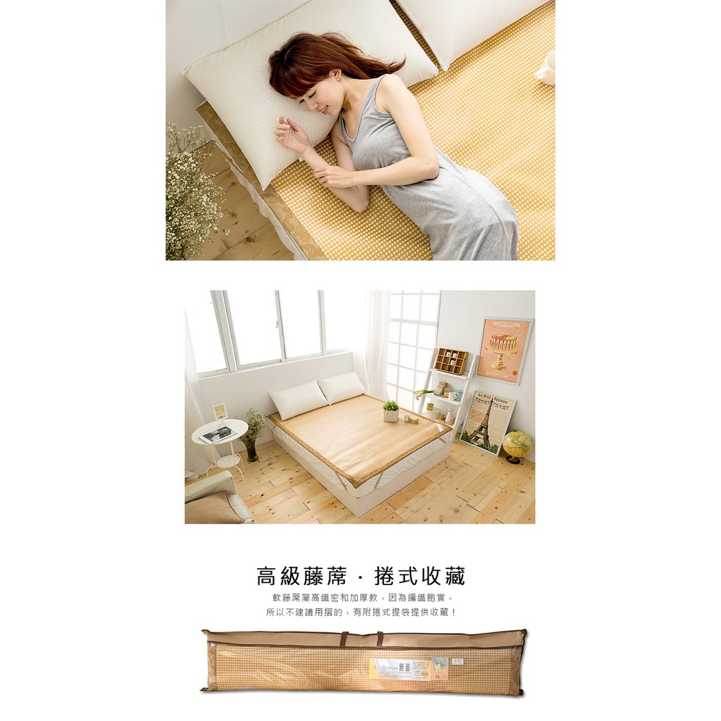 1cm加厚藤蓆 加厚涼蓆 厚竹蓆 厚涼席 涼感軟藤蓆竹蓆-單/雙/加大/特大.MIT台灣製3D透氣網【涼爽不夾髮】
