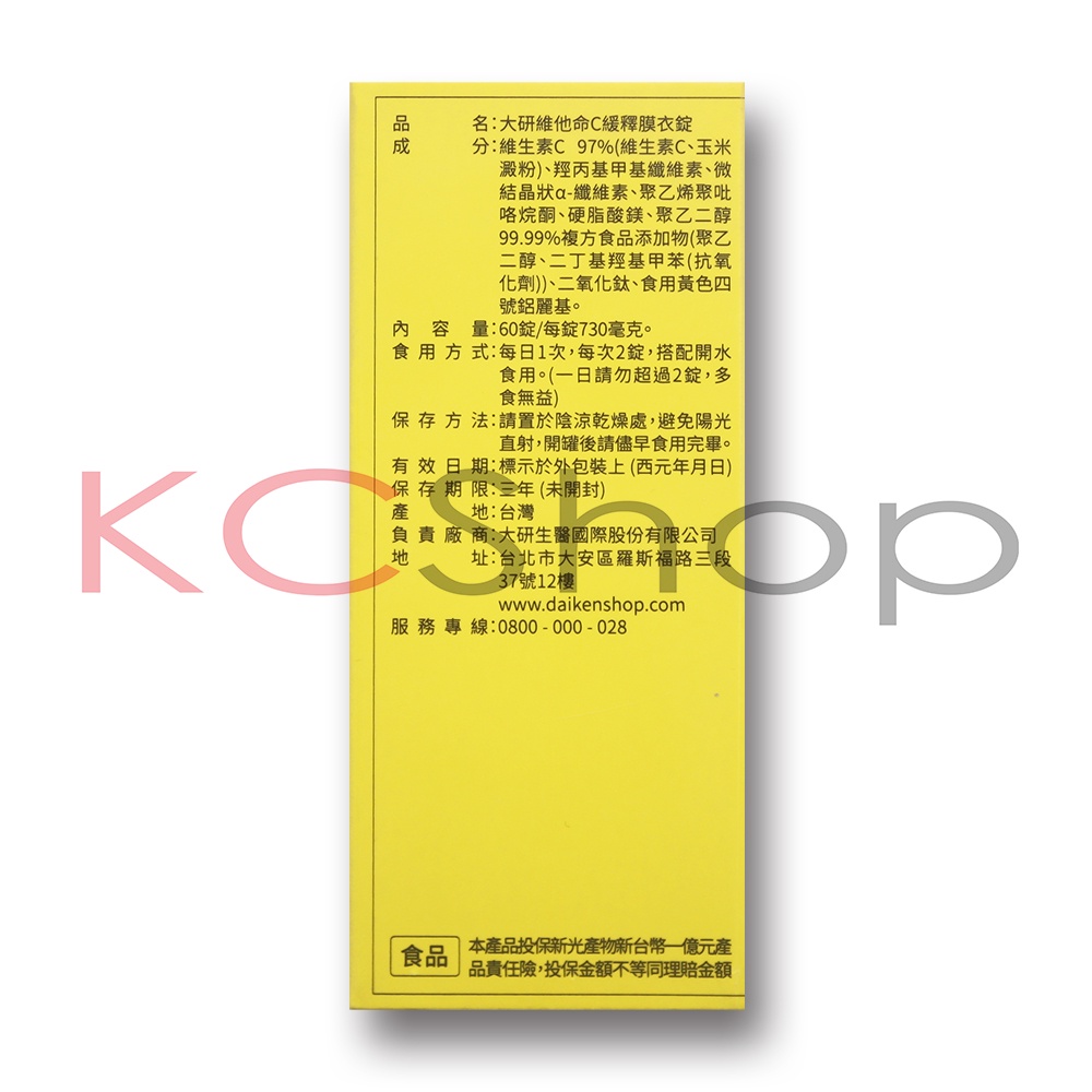 大研生醫 維他命C緩釋膜衣錠(60錠)Vitamin C【kcshop】
