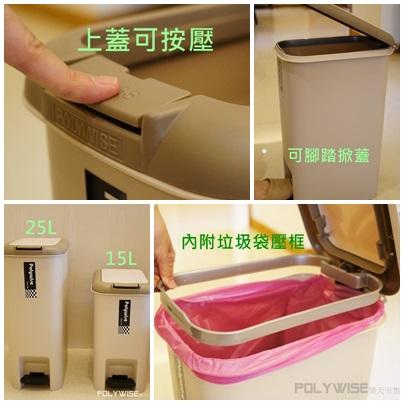 簡單樂活 BI-5913 大哈登兩用腳踏手按垃圾桶(25L) 台灣製造 生活美學