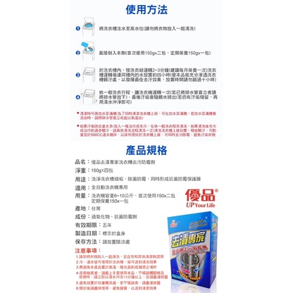 🔥🇹🇼🔥台灣製 優品洗衣糟去污防霉劑150g*4入去污劑 洗衣槽 萬用