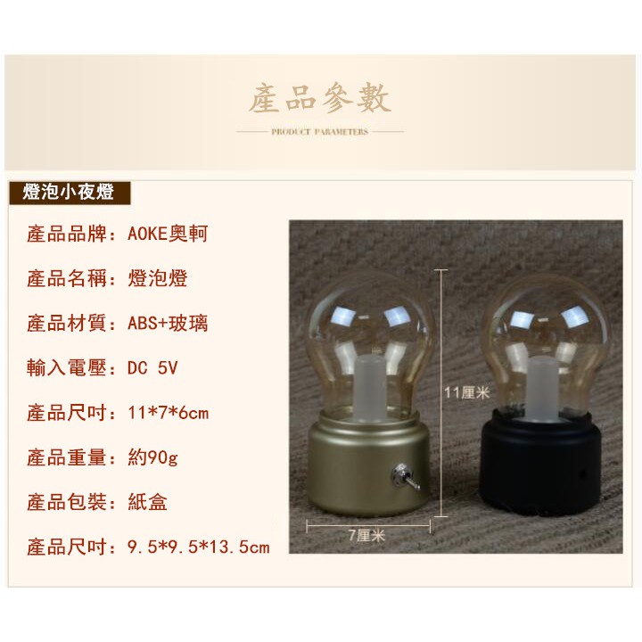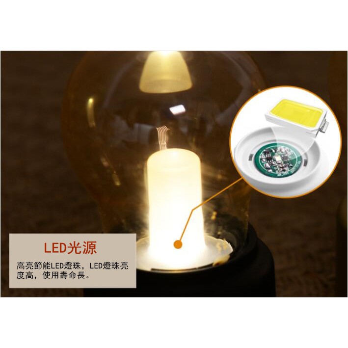 奧軻燈泡燈 LED檯燈 充電小夜燈 床頭燈 裝飾燈 書桌桌燈 戶外應急燈 復古懷舊臺燈 家用小檯燈