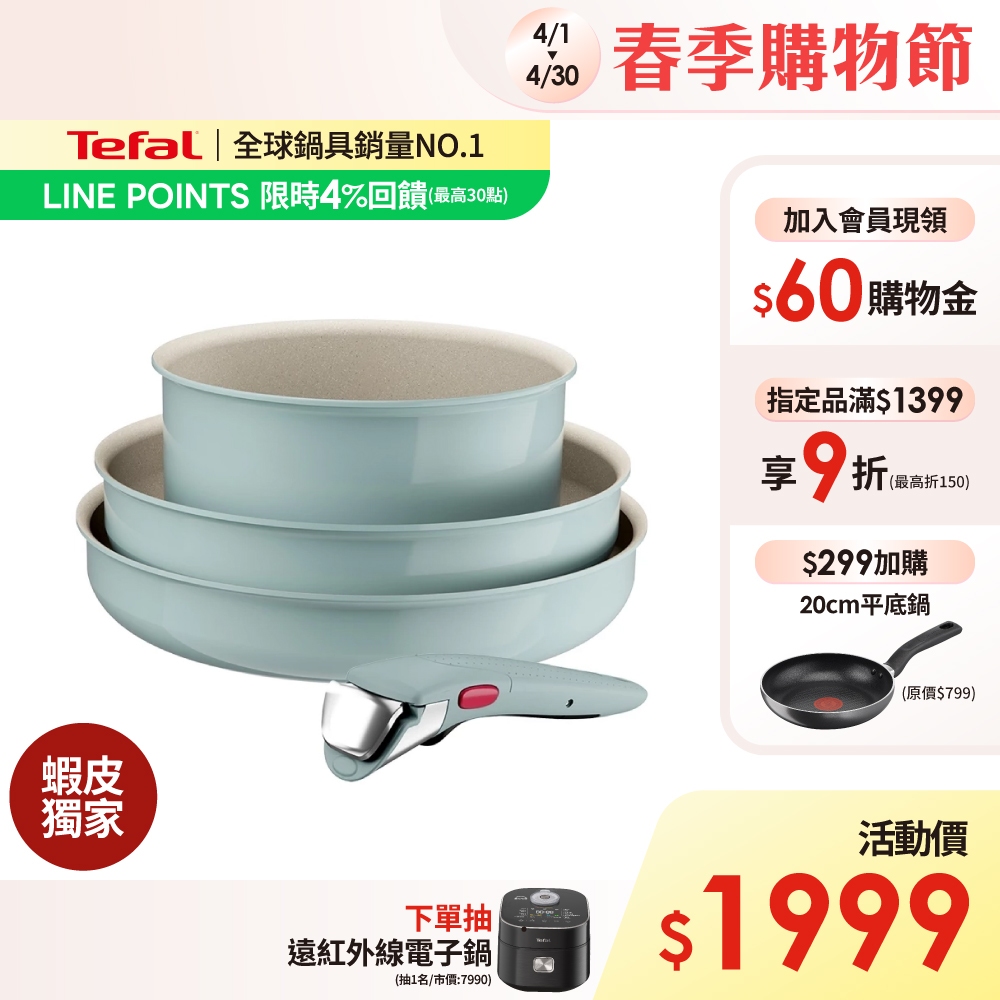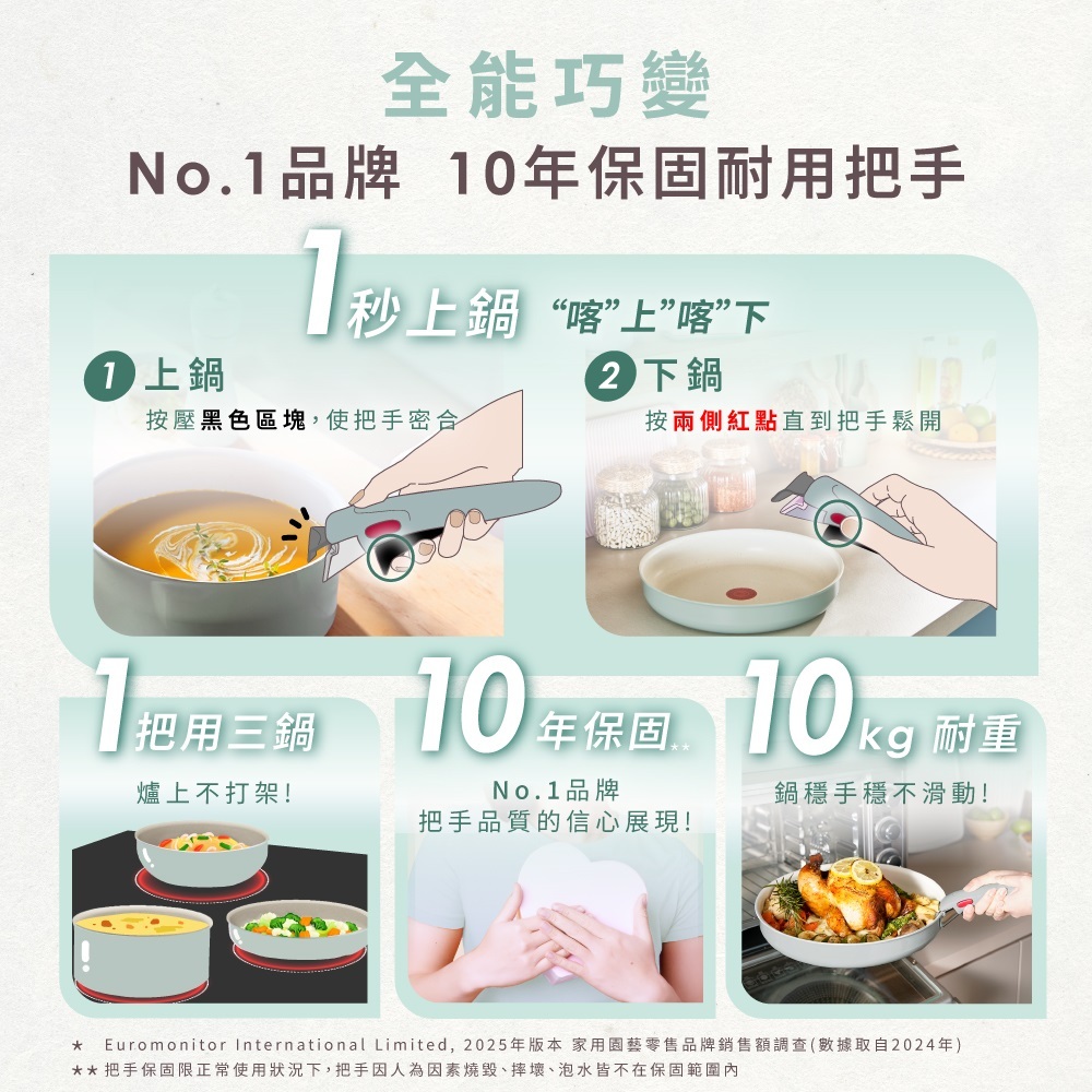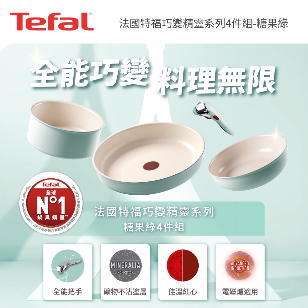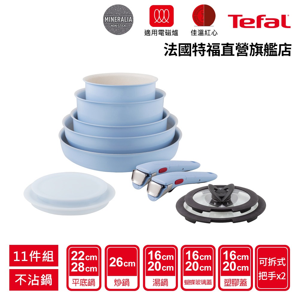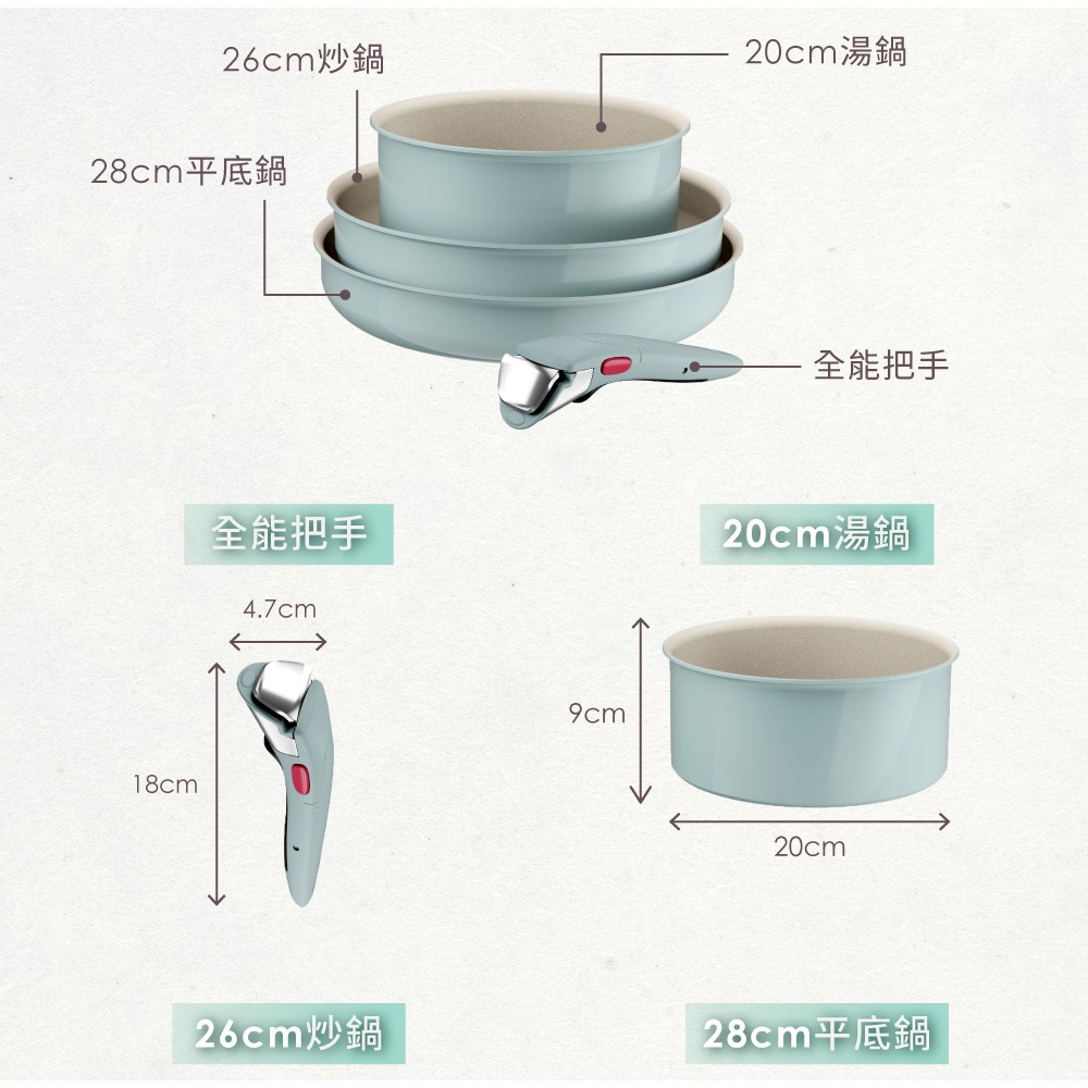 Tefal法國特福 巧變精靈系列不沾鍋4件組/11件組- 莫蘭迪綠.糖果綠/天空藍(任選) 礦物添加塗層 可拆式鍋具