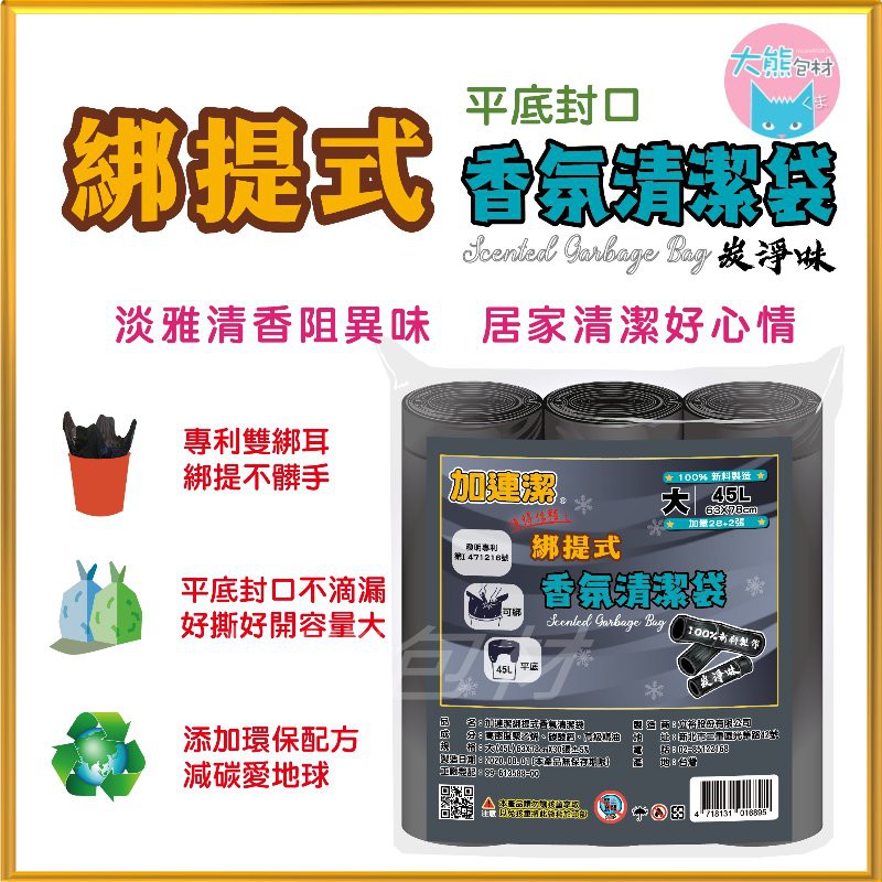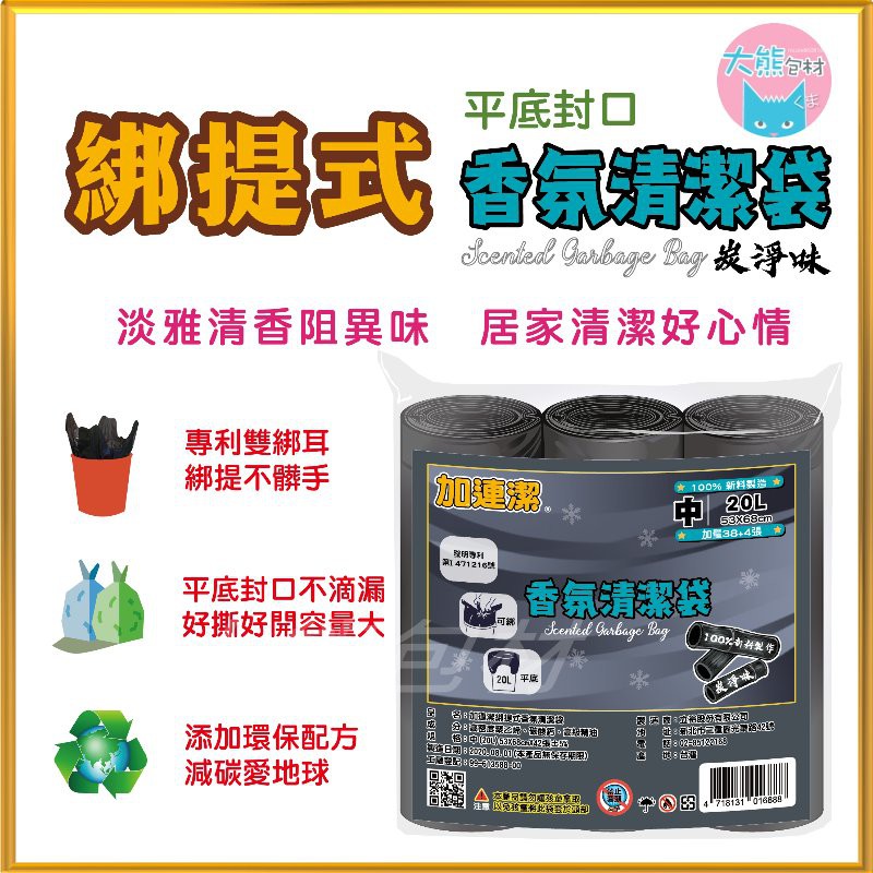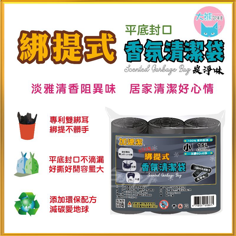 🔥獨創式花瓣袋口設計⬛️《竹炭香氛清潔袋》《加連潔》垃圾袋 平底封口 大、中、小 容量大 環保愛地球【大熊包材】
