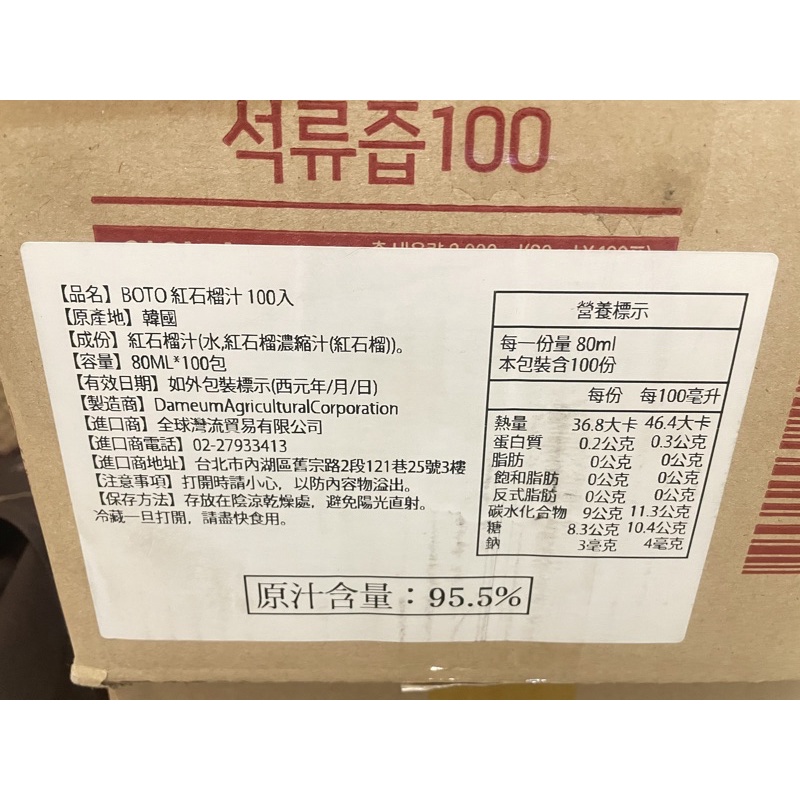 韓國Boto進口 紅石榴汁(訂購整箱100包請選賣家宅配)