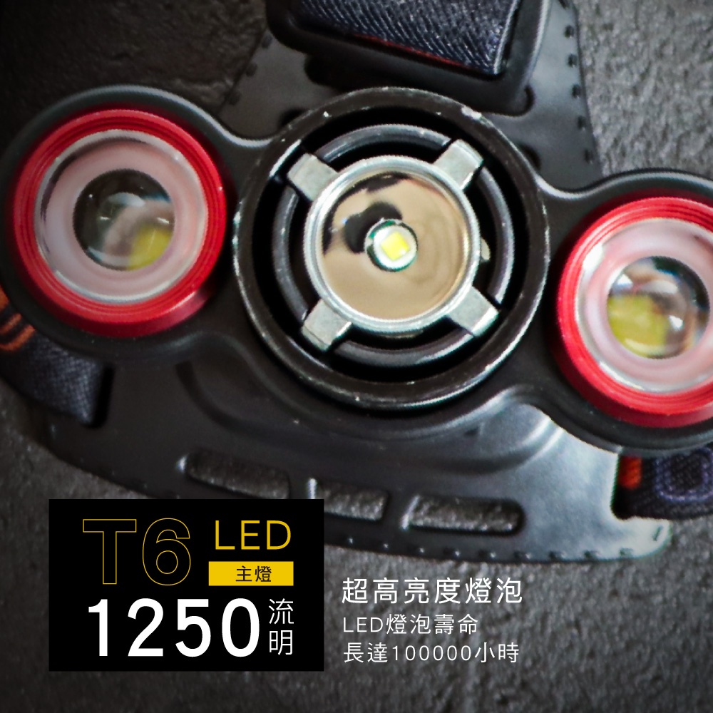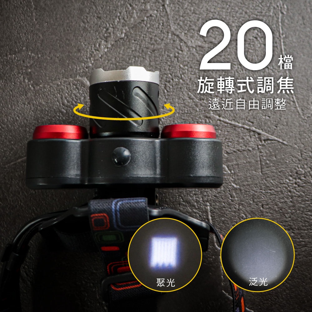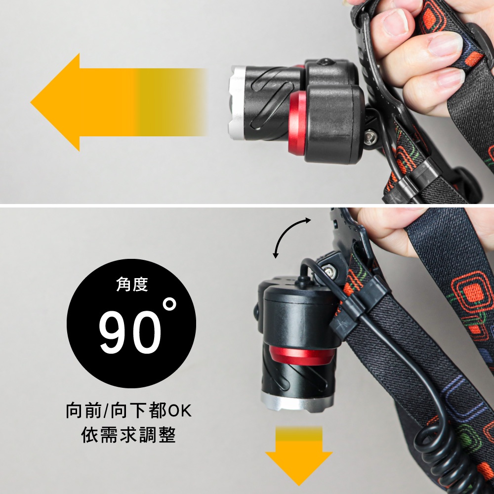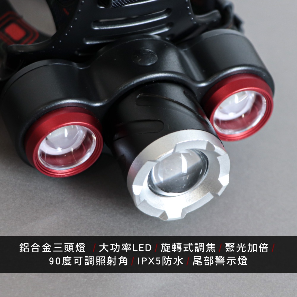 〖KINYO〗 USB充電式三頭變焦頭燈 (LED)充電式 三頭燈 T6+ XPE 照射500M | 登山 探照燈