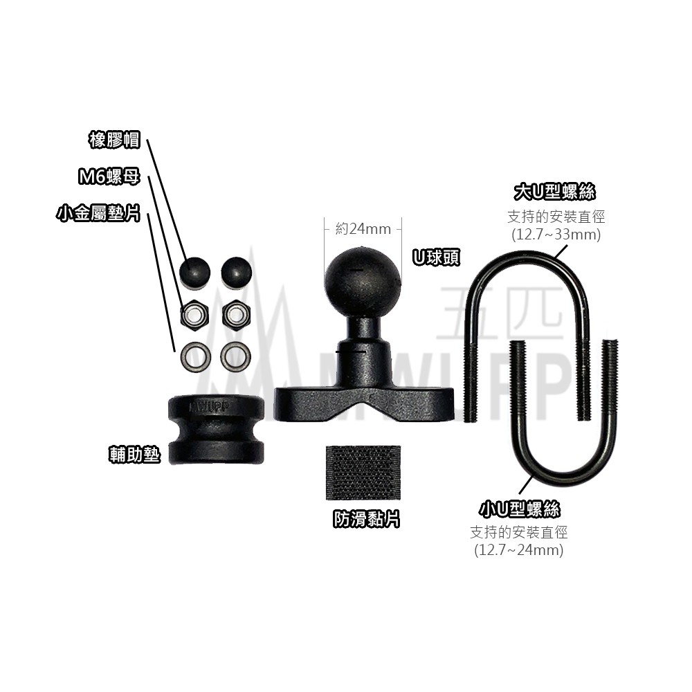 五匹 MWUPP 台灣專用版 原廠授權 U型球頭 裸把橫桿 飾桿 新版 osopro 變徑球頭