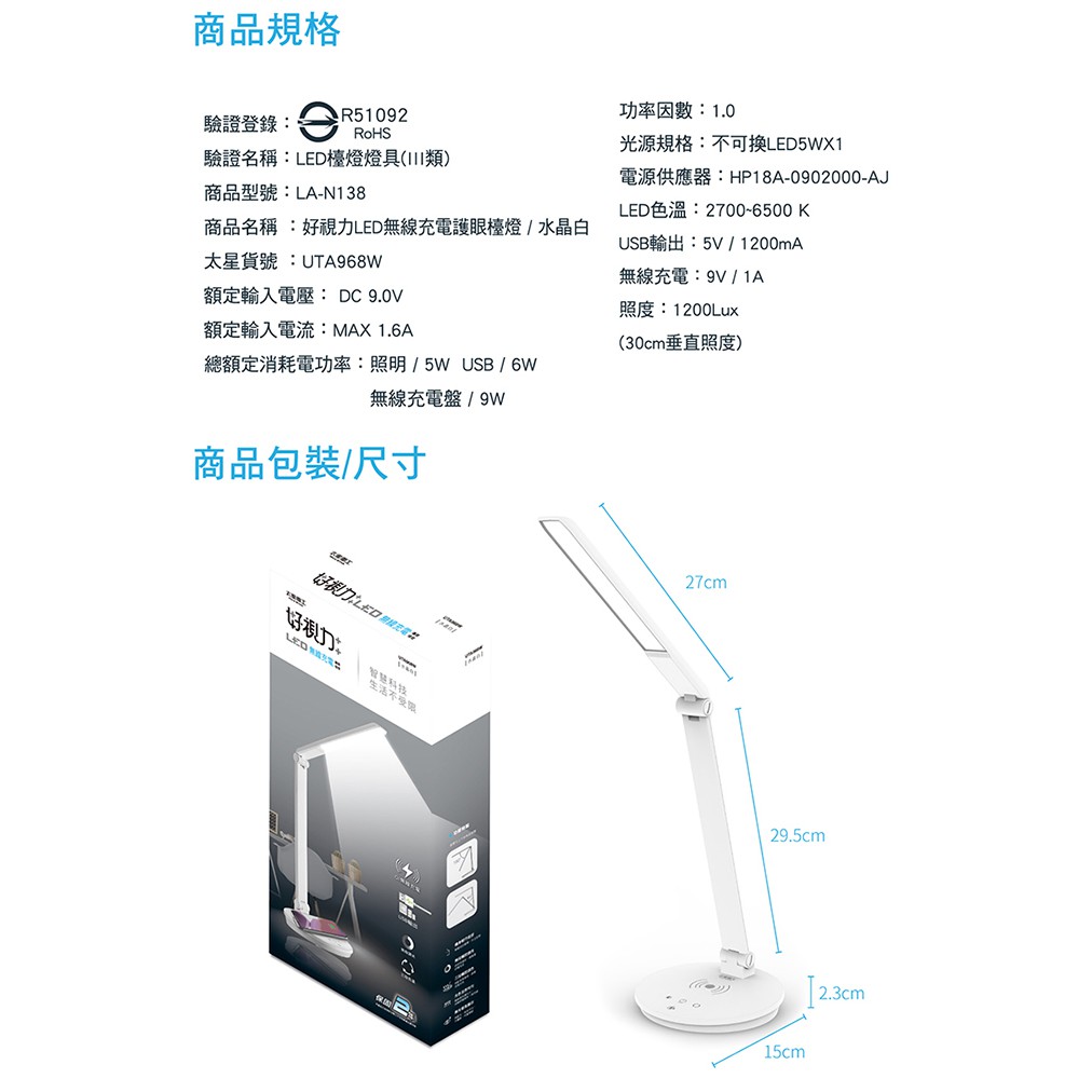 【好樂購】太星電工 好視力 LED 護眼檯燈5W (水晶白) 檯燈 桌燈 書桌 書桌燈 照明