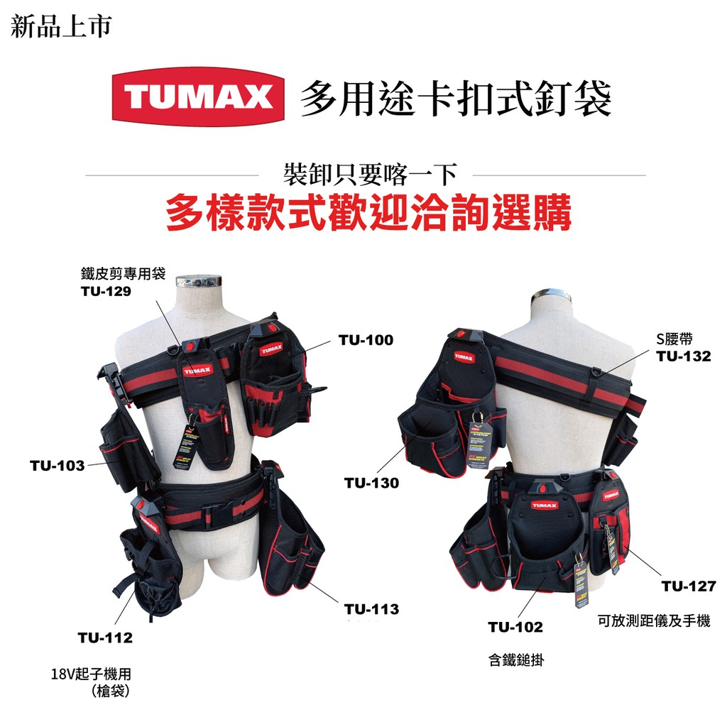 【吳師傅工具】TUMAX TU-132 卡扣式快扣舒適S腰帶/工具包S腰帶/工具袋腰帶