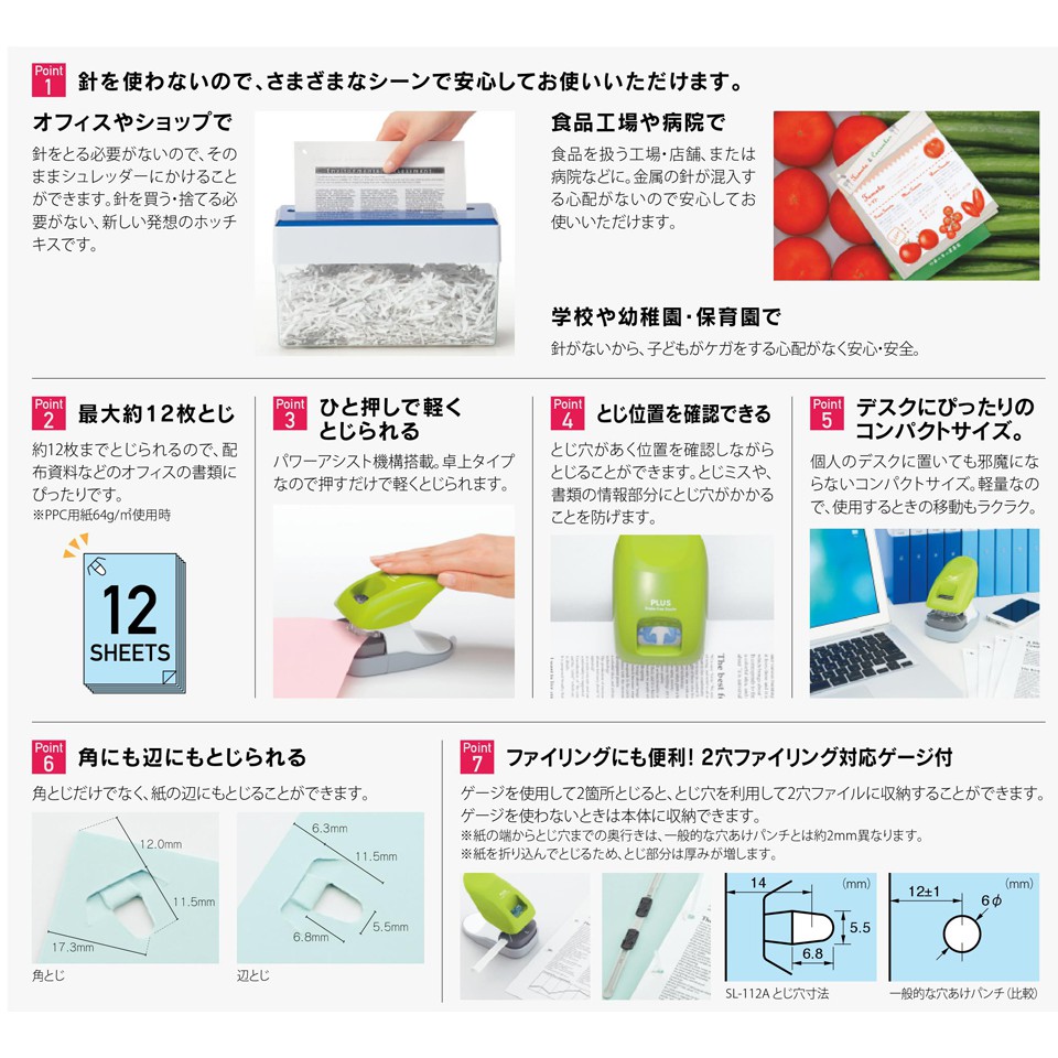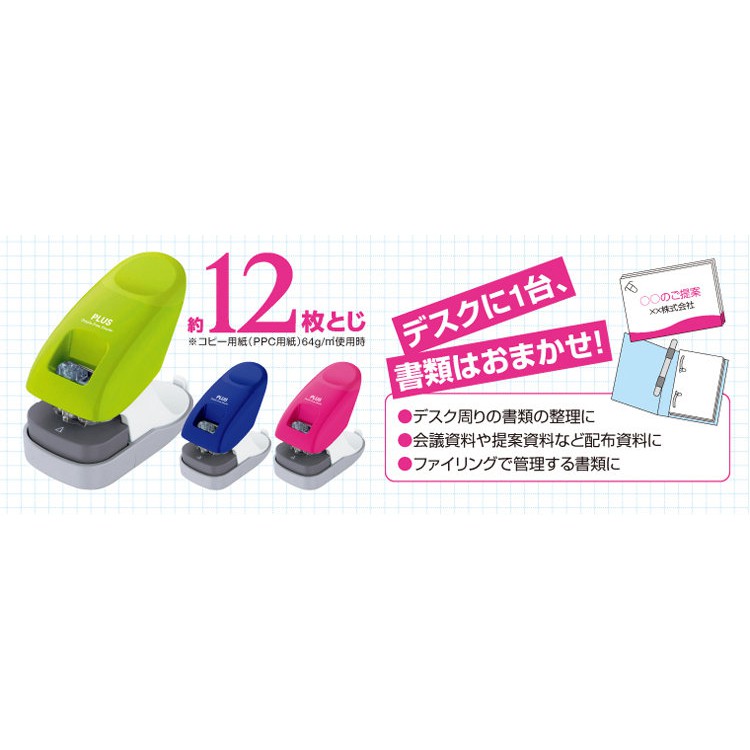【乖迪文具小舖】PLUS 普樂士 //無針訂書機// SL-112A(藍.綠.粉) 可訂12枚