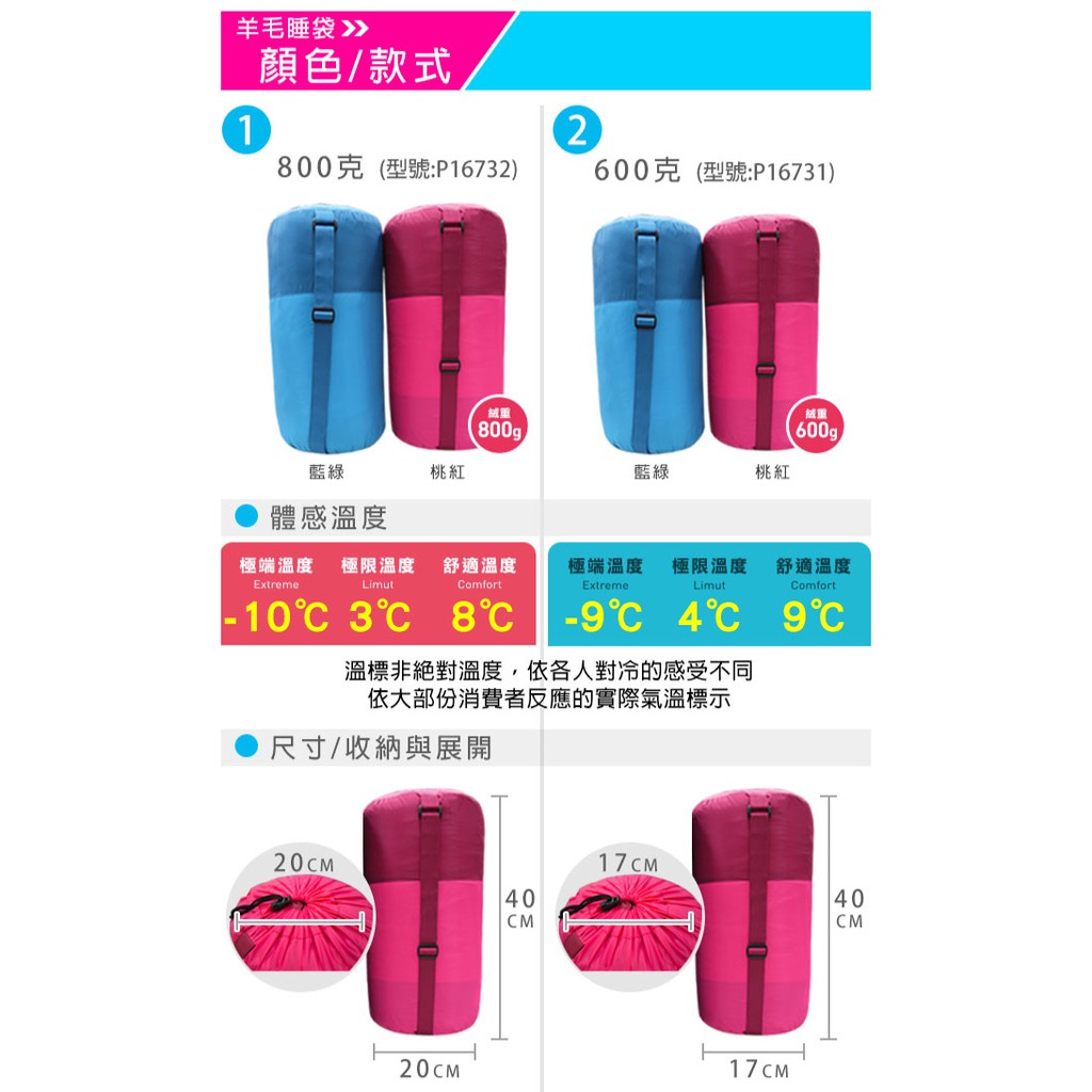 PolarStar 羊毛睡袋 800g 『藍/紅』 P16732