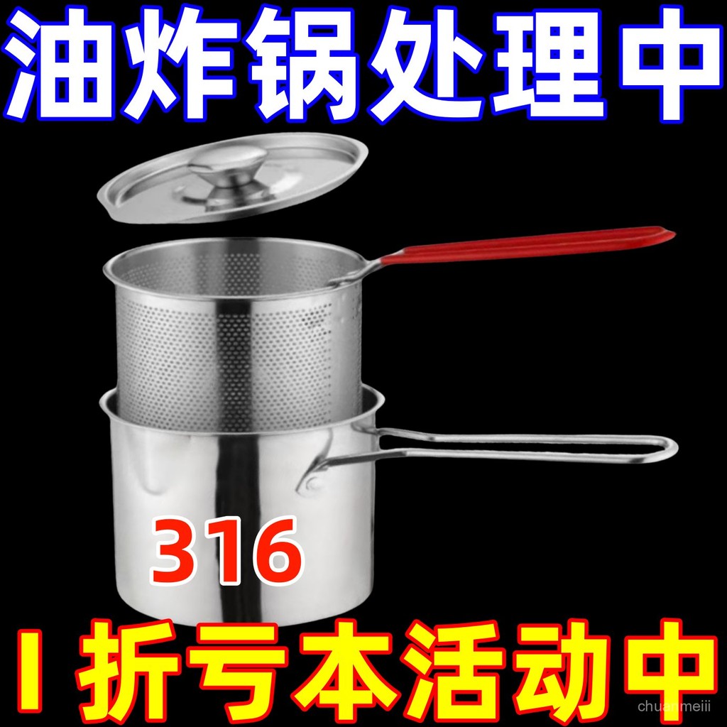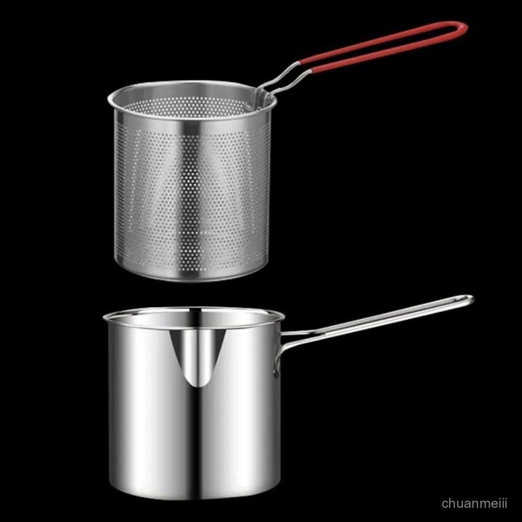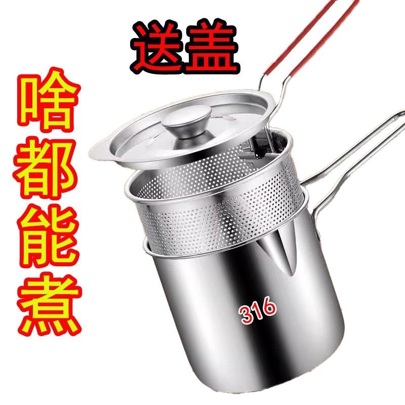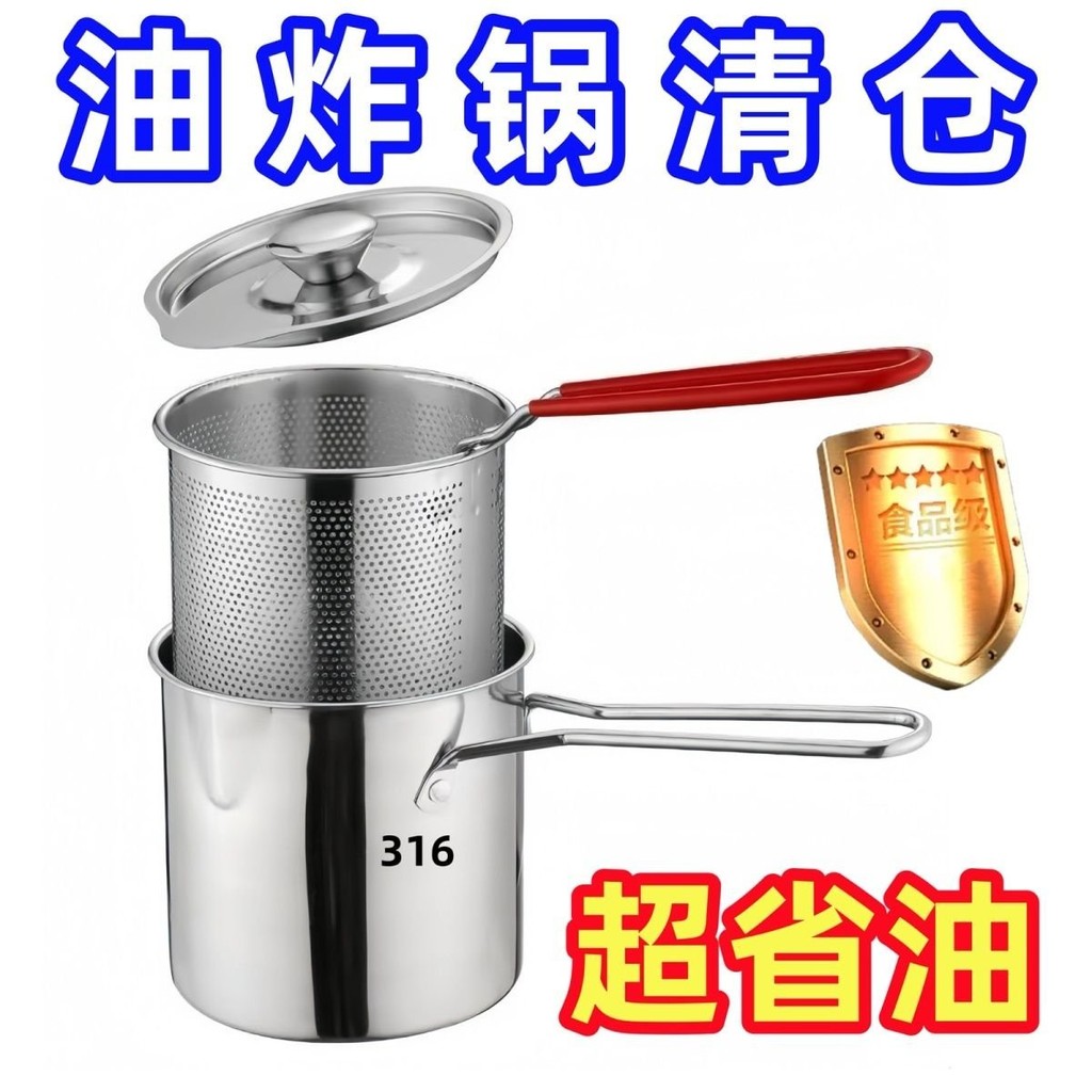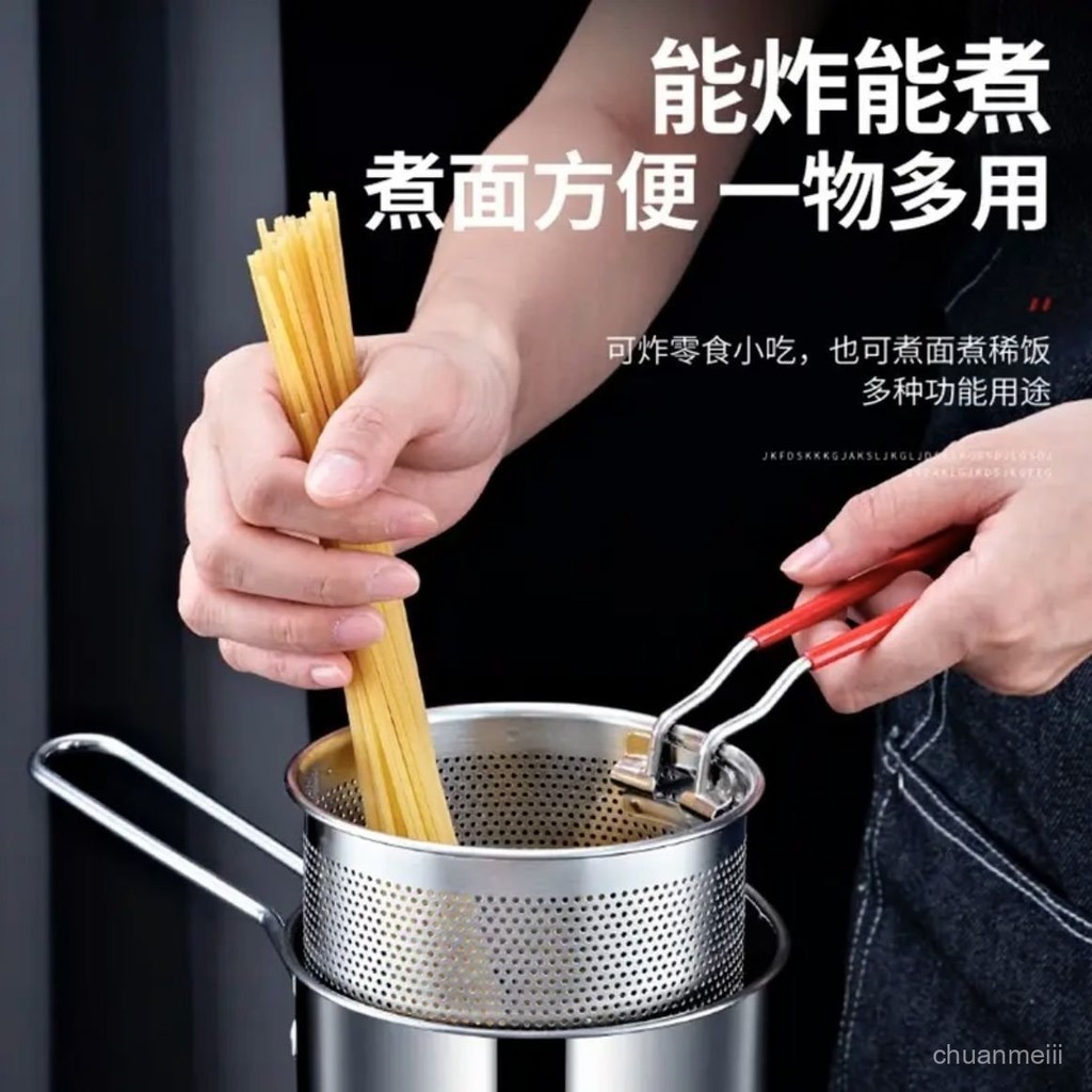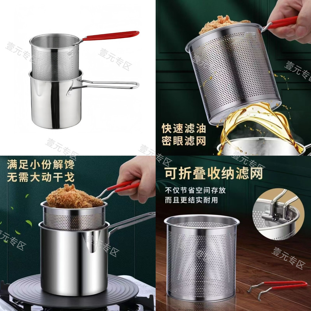 🔥臺灣出🔥不銹鋼油炸鍋迷你炸鍋炸串薯條濾網省油多功能油鍋電磁爐燃氣通用 小型油炸鍋 ET9L