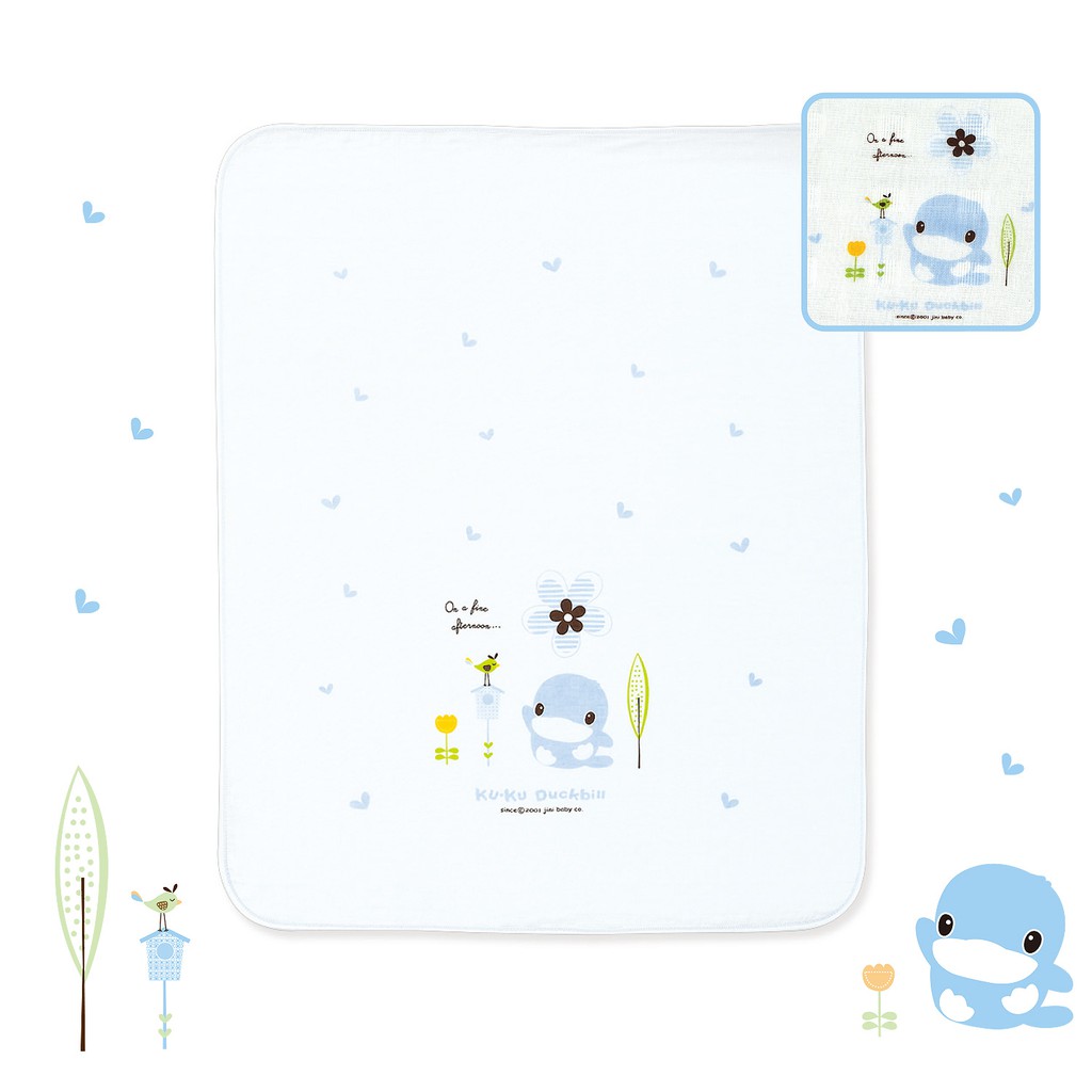 KUKU 酷咕鴨 格子緹花紗布大浴巾 藍/粉
