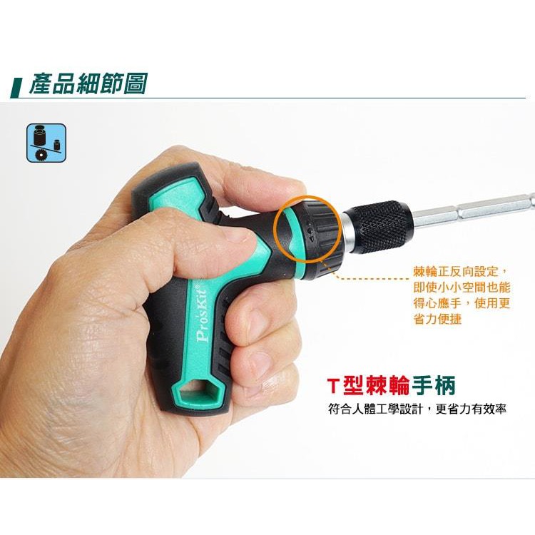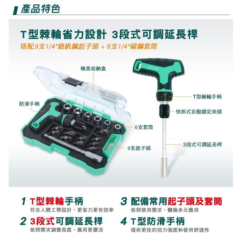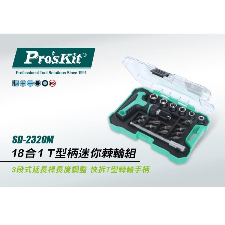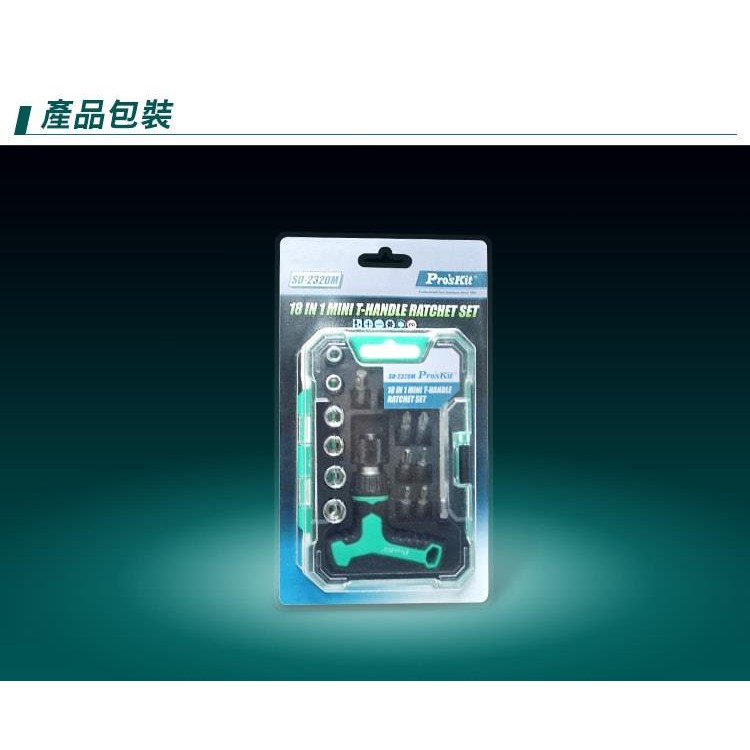 【Pro'sKit 寶工】SD-2320M T型柄18合1 迷你棘輪組 防滑手柄 T型棘輪手柄 套裝工具組